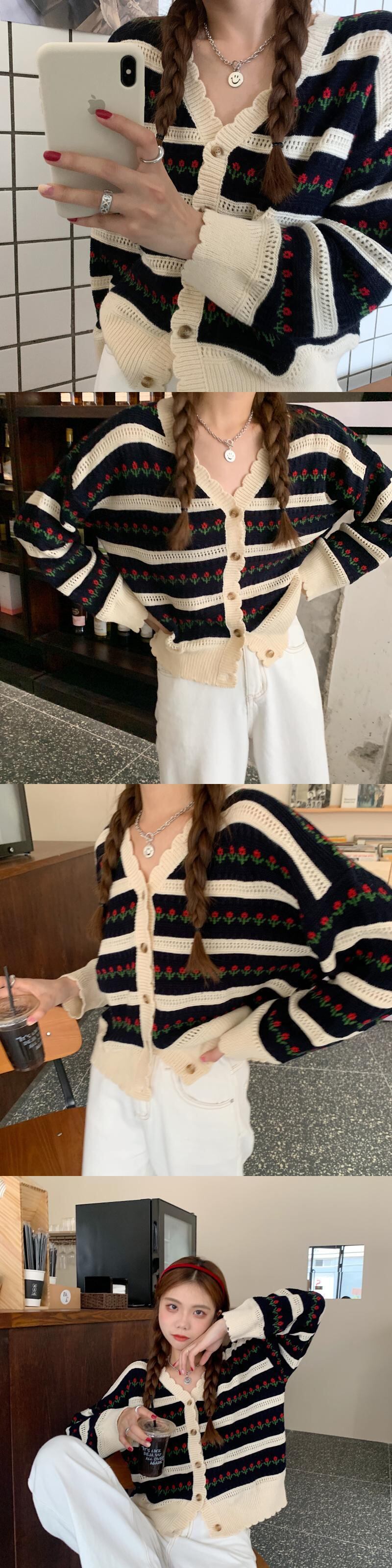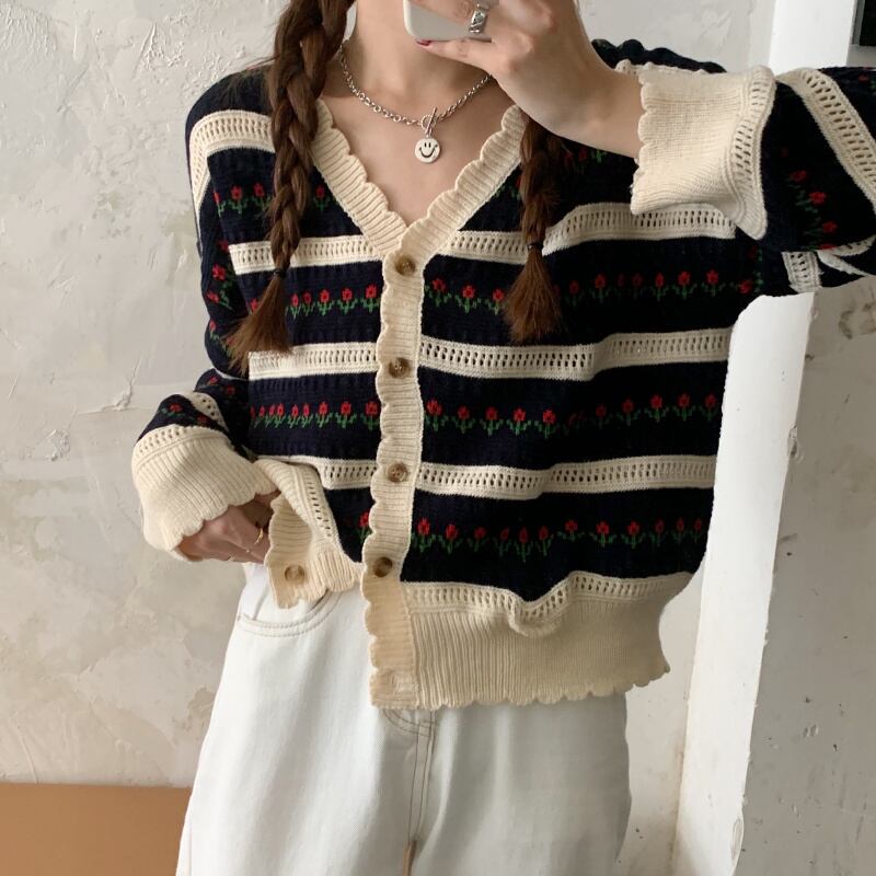 スタイルVネックストライプセーター スプリング秋物ルーズショートカーディガンジャケット 春物 オータム SPM59288651517