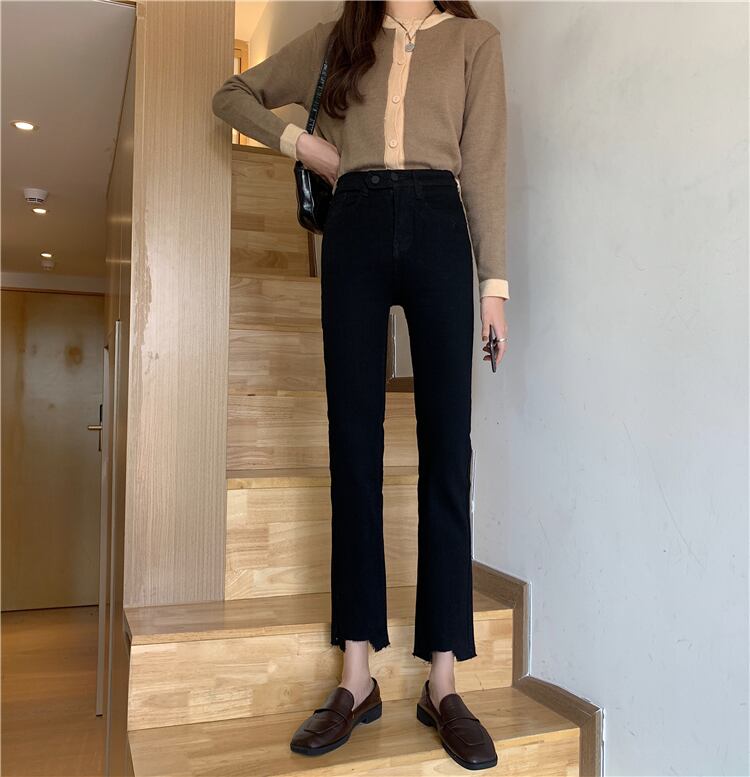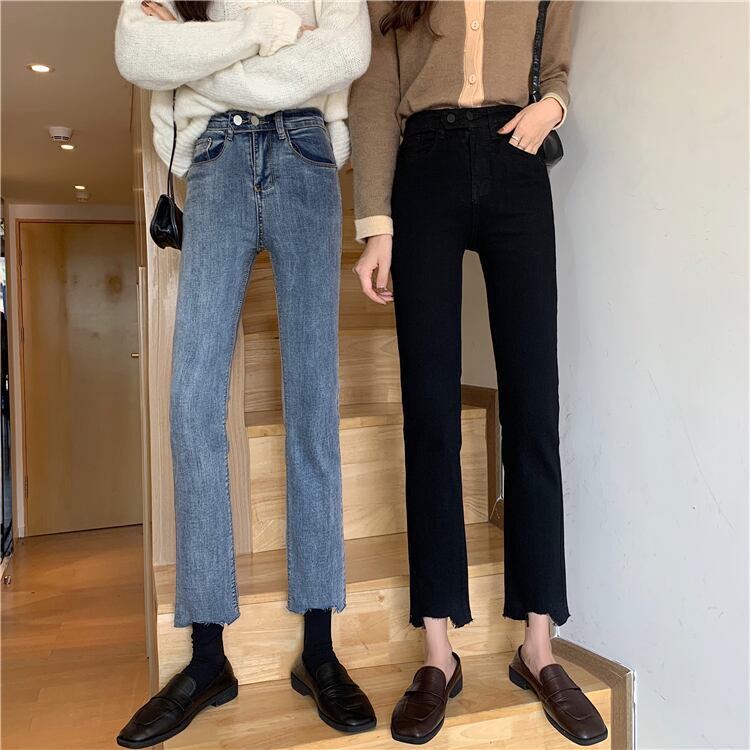 ブラックパンツ スプリング韓国ファッションハイウェストジーンズ スリム 春物 スタイル ウエスト SPM16659602309