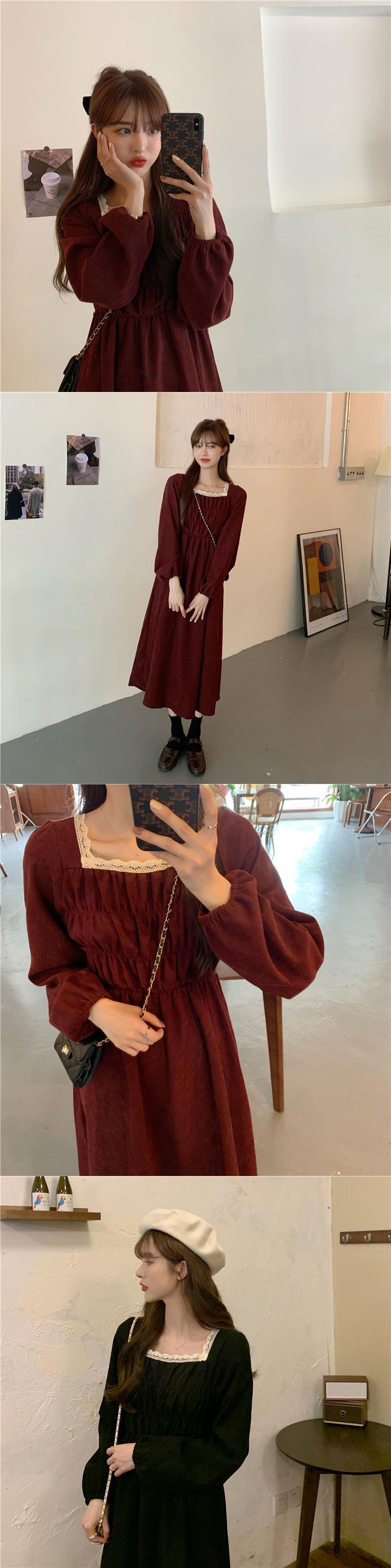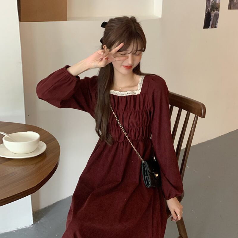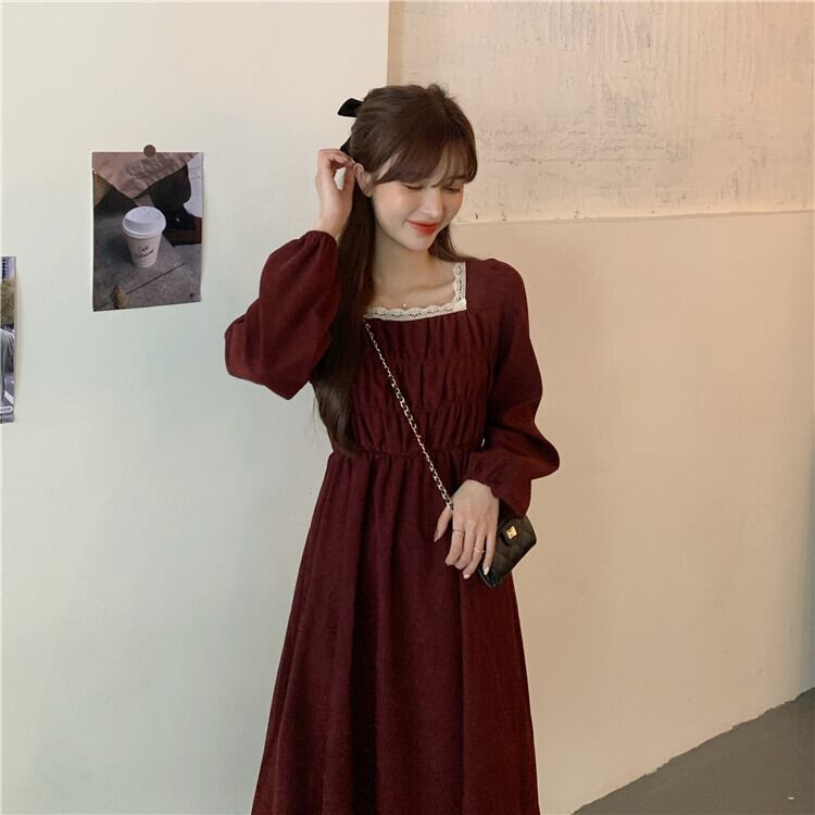 スプリング秋物カラーレーススカート ウェストレッドワンピースレディースAライン 春物 オータム スクウェア ウエスト ミドル丈 SPM99816167825
