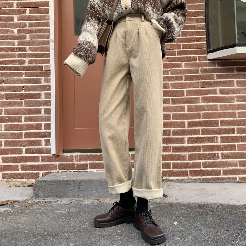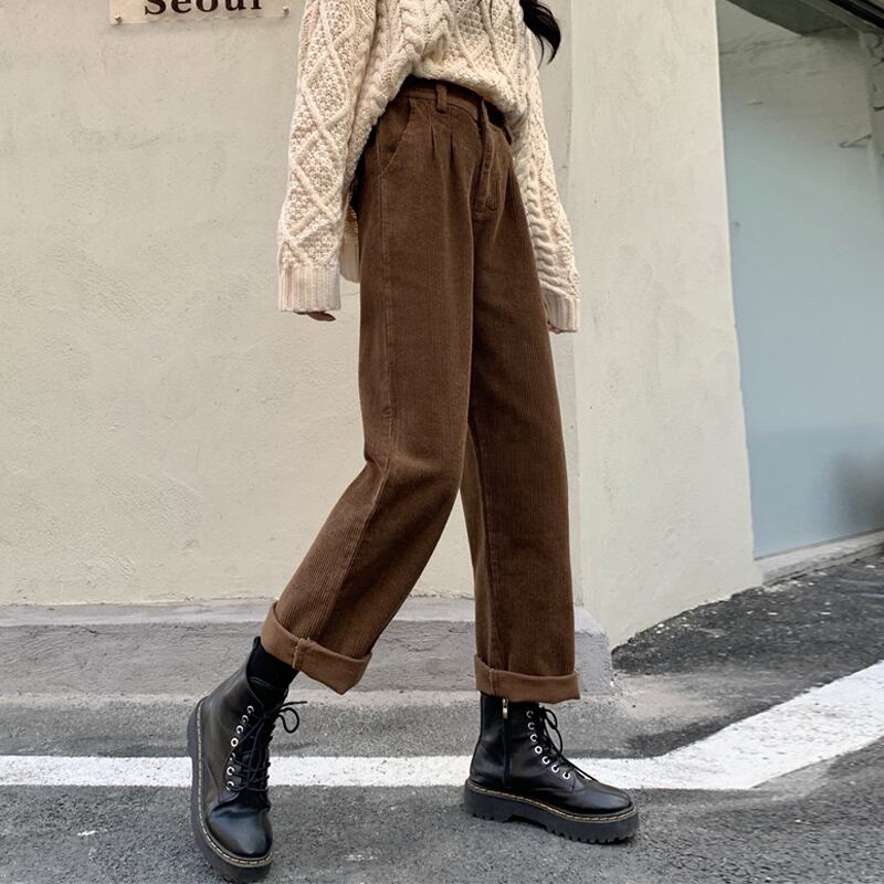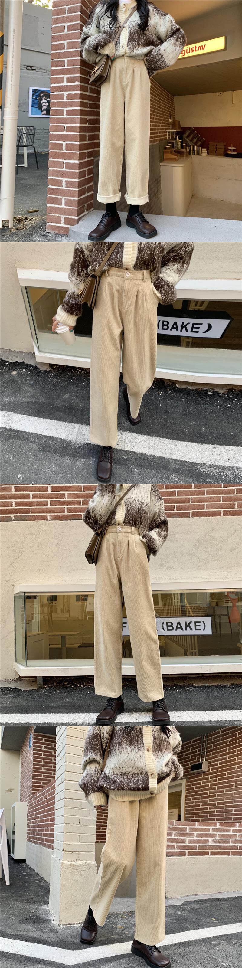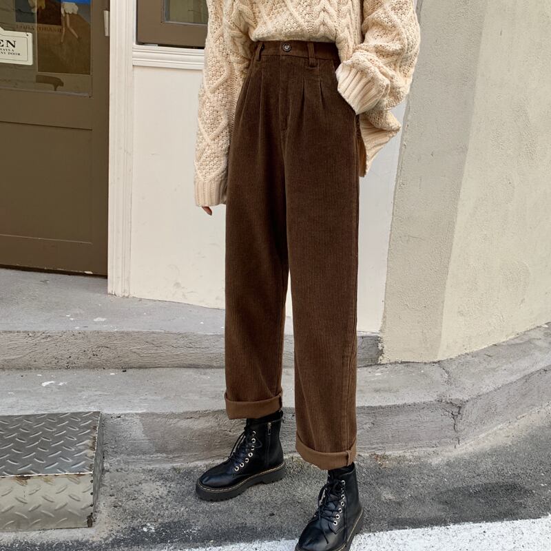 コーデュロイパンツ スプリングスタイル韓国ファッションルーズカジュアルハイウェスト薄手 春物 ウエスト SPM70784178522