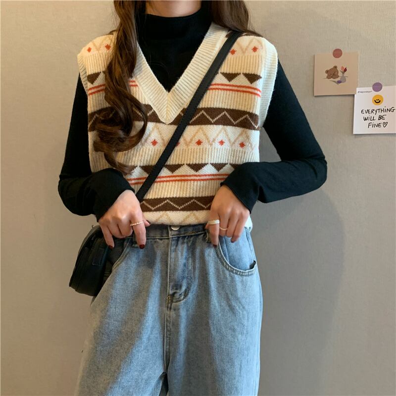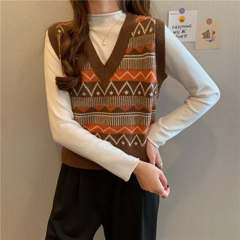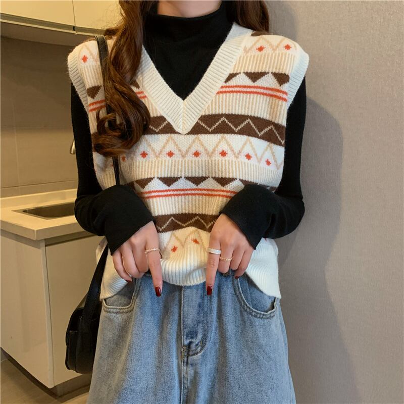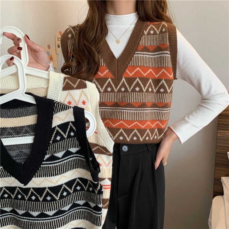 スタンダードVネックニットルーズスプリング秋物ノースリーブレディーストレンド レトロ 春物 オータム ウエスト SPM1876878916
