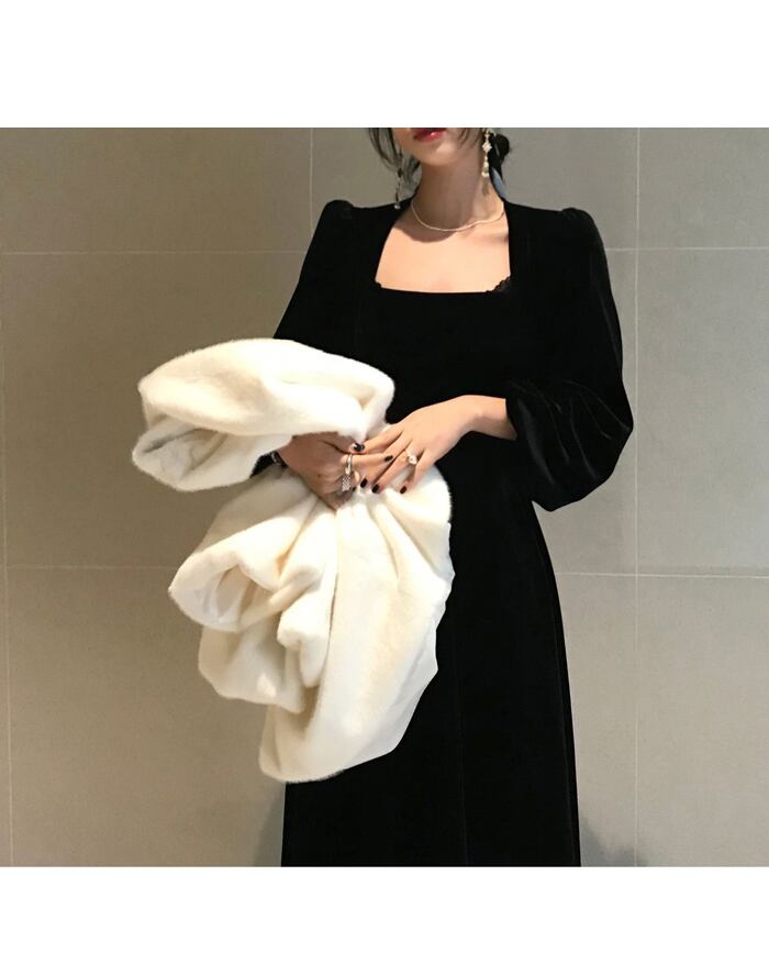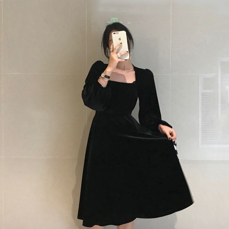スプリングワンピーススタンダードスタイルブラック レトロ 春物 SPM69450279239