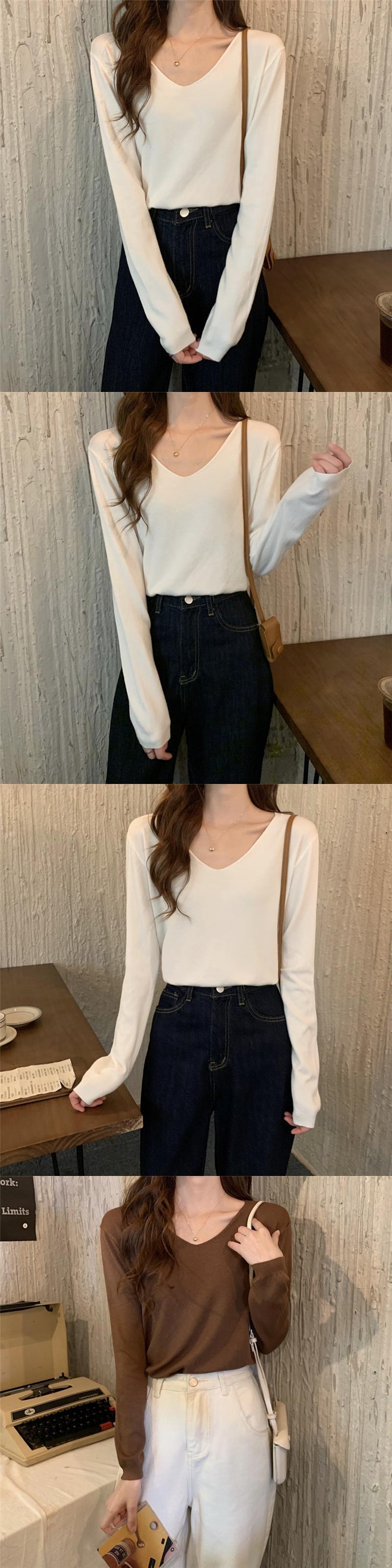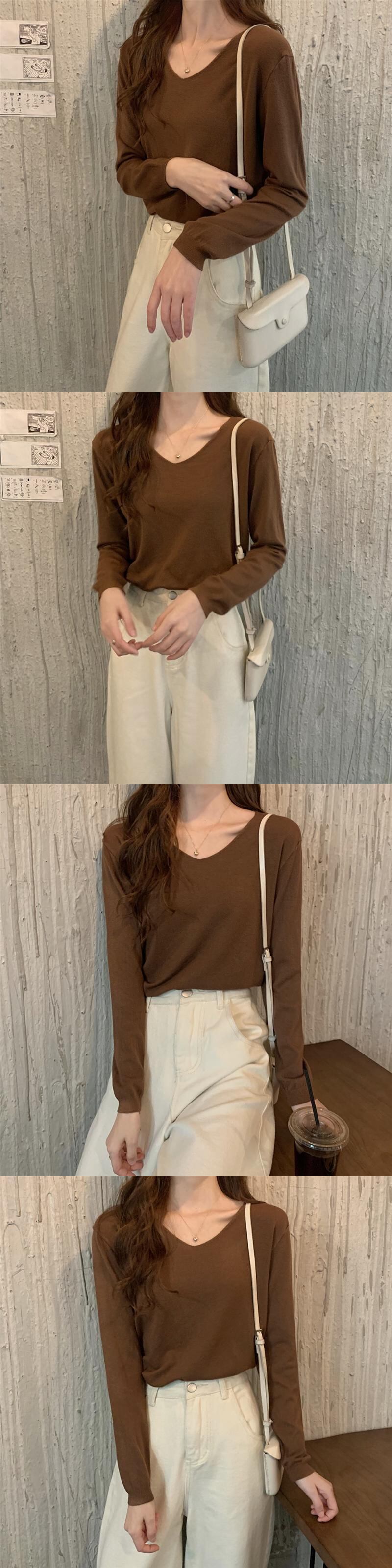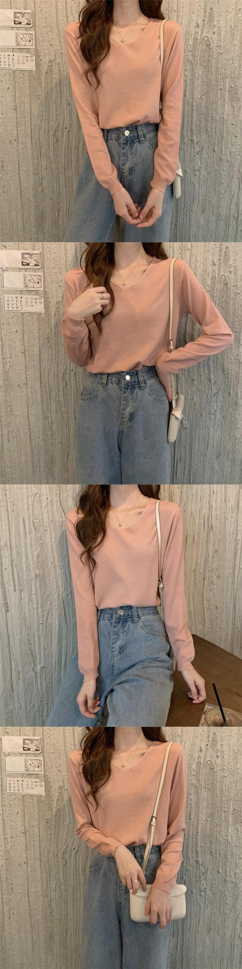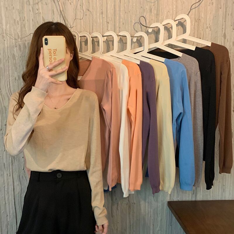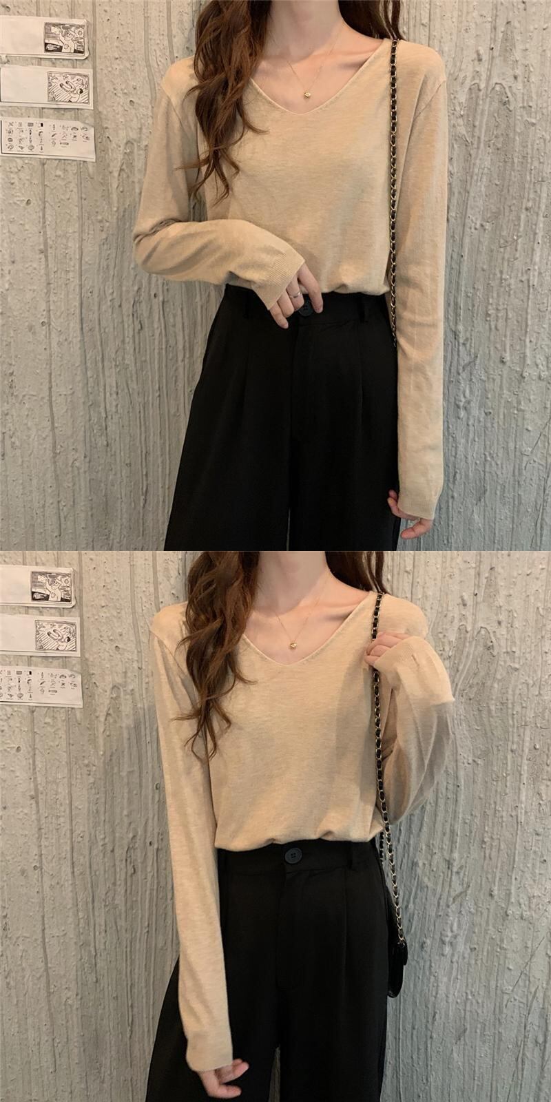 スタイルVネックセーター スプリング韓国ファッションルーズプルオーバー ゆったりシャツ トップス ロング 春物 長袖 SPM49412623957
