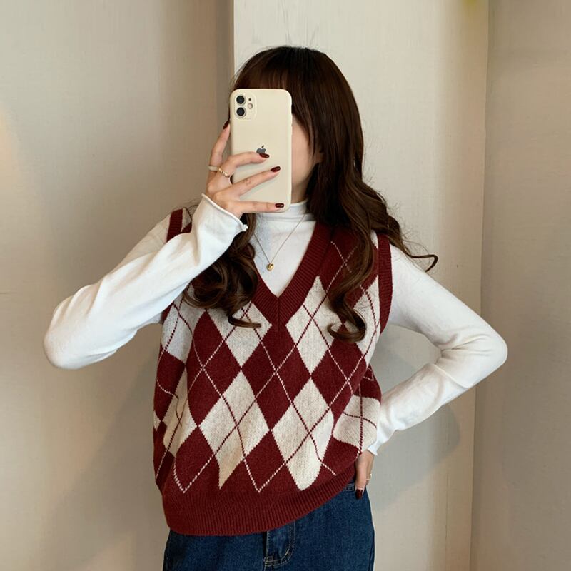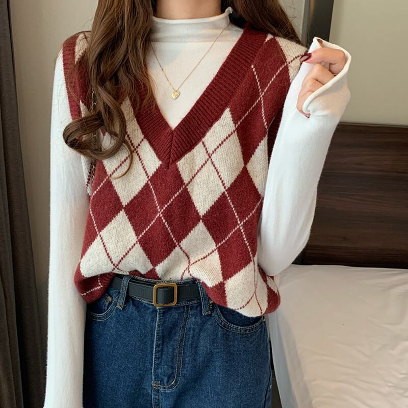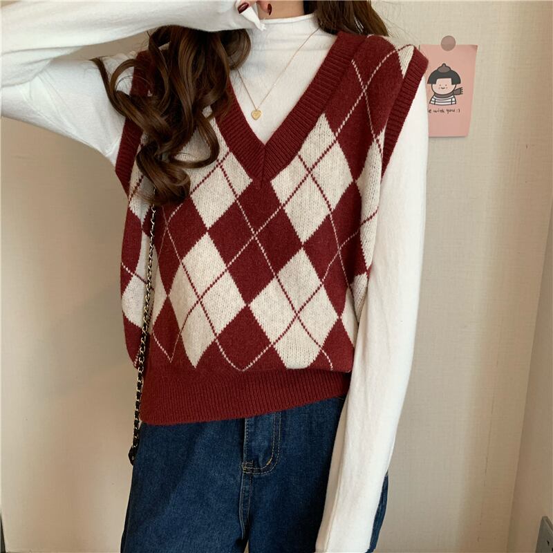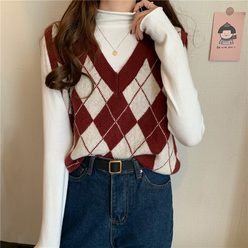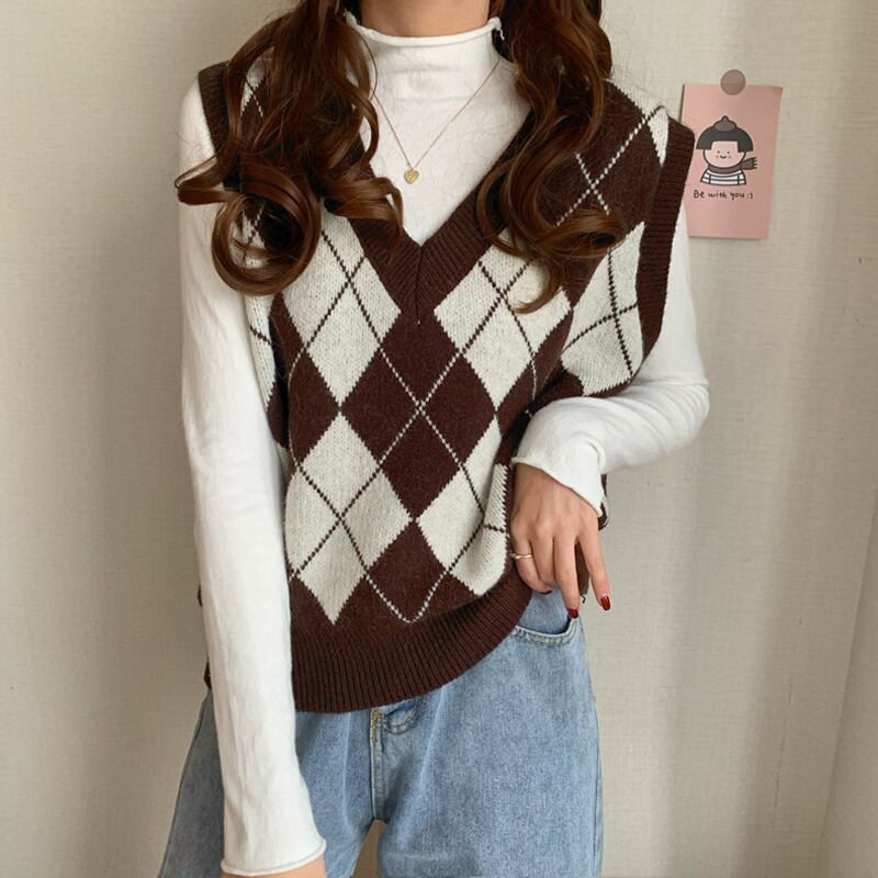 スプリング秋物Vネックセーター ジャケット スタンダードスタイルルーズニット レトロ 春物 オータム ウエスト SPM57936839533