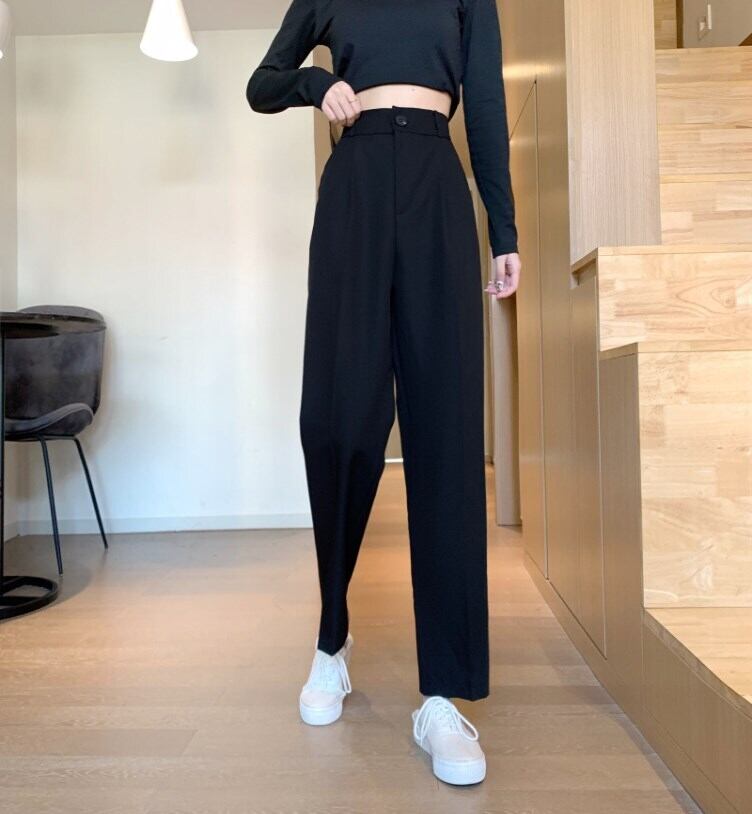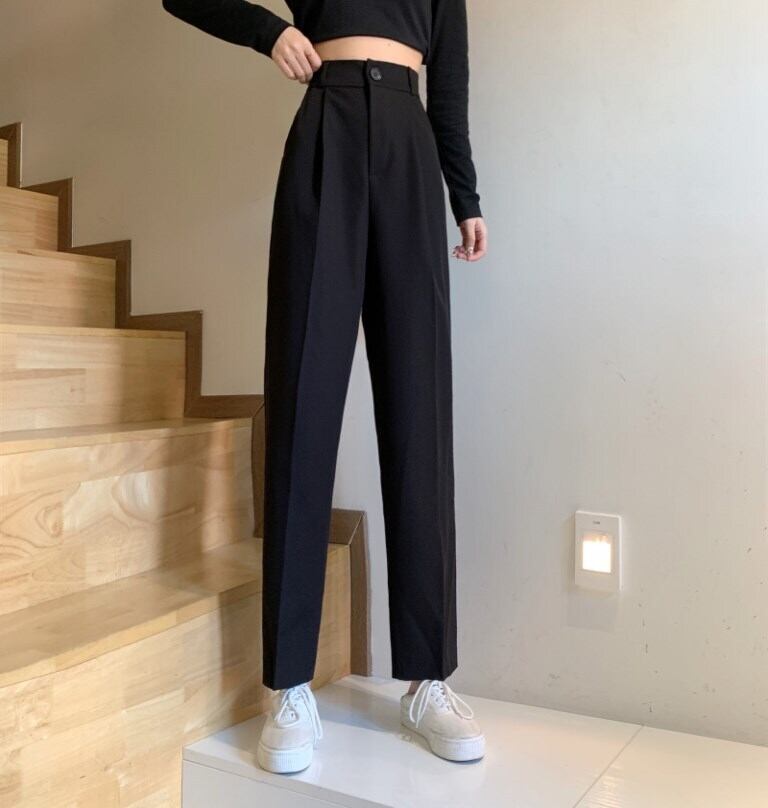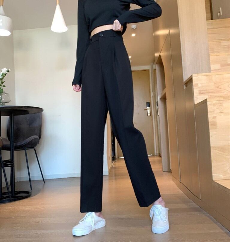 ブラックパンツ スプリング韓国ファッションルーズハイウェストウェストスリムカジュアル 春物 スタイル ウエスト SPM11594633949