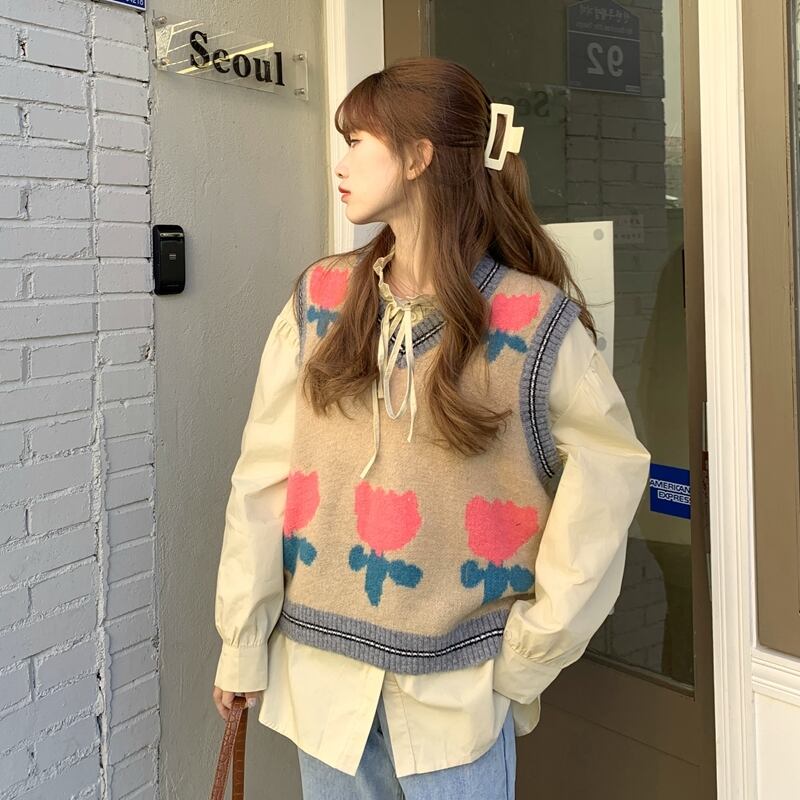 ニットセーター スプリングルーズVネックシャツ 春物 ウエスト SPM14577939911