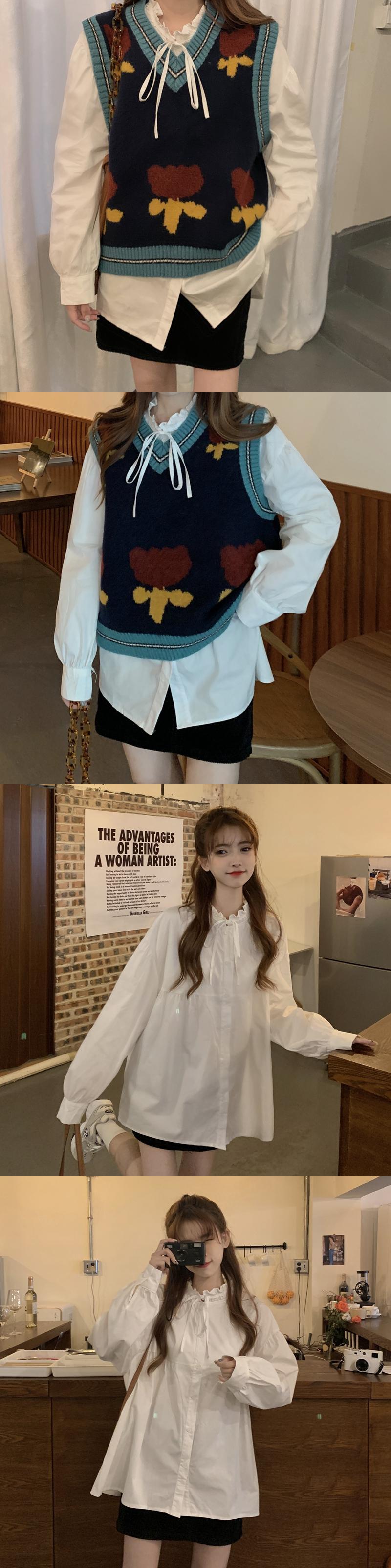 色:白いシャツのワンピース,ワンピースアプリコットシャツ,ブルーベストワンピース,アプリコットベストワンピース