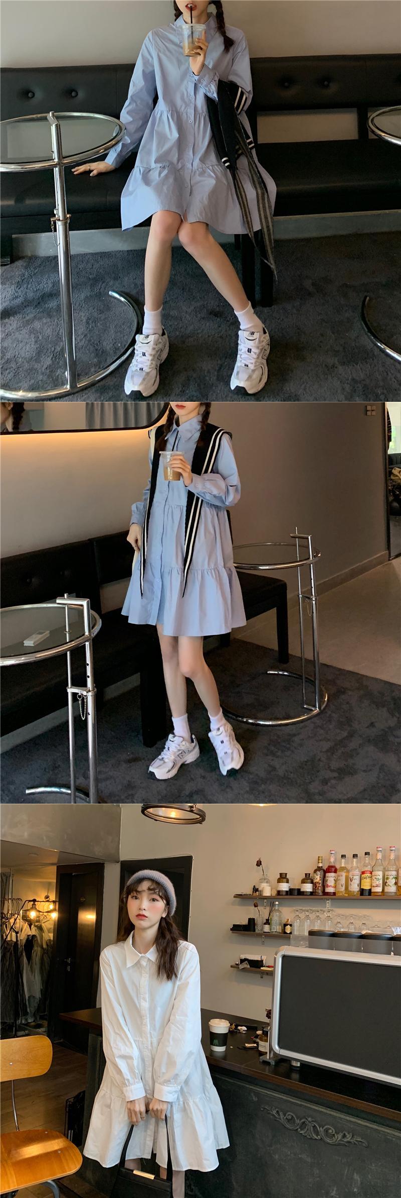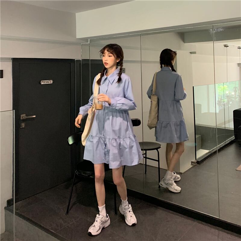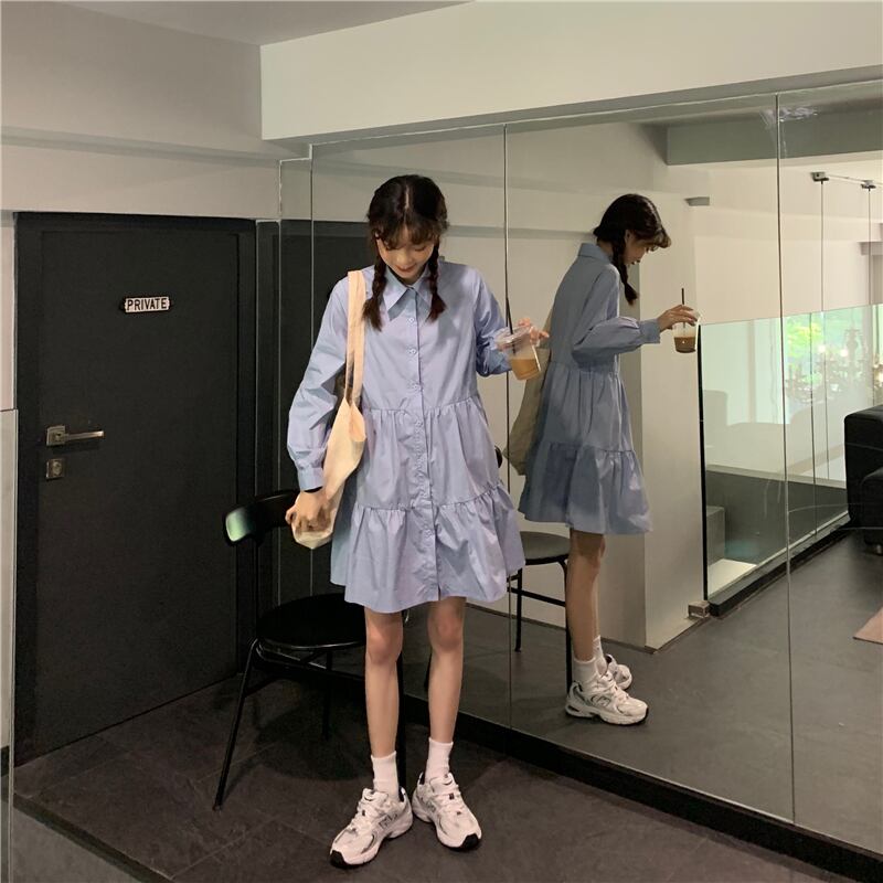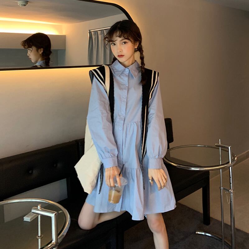 スカート スプリング韓国ファッションセーター ショールネイビーカラーブルーシャツ ワンピースレディース 春物 SPM88873355454