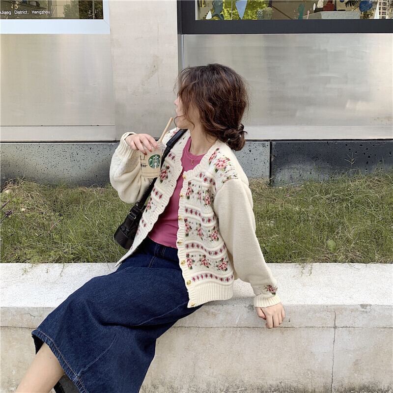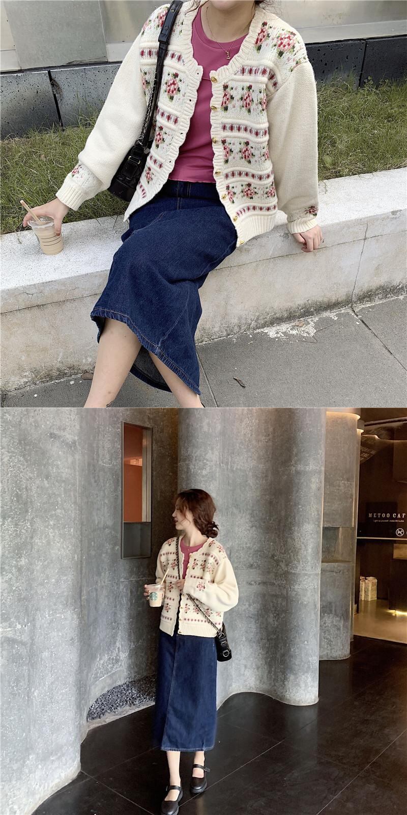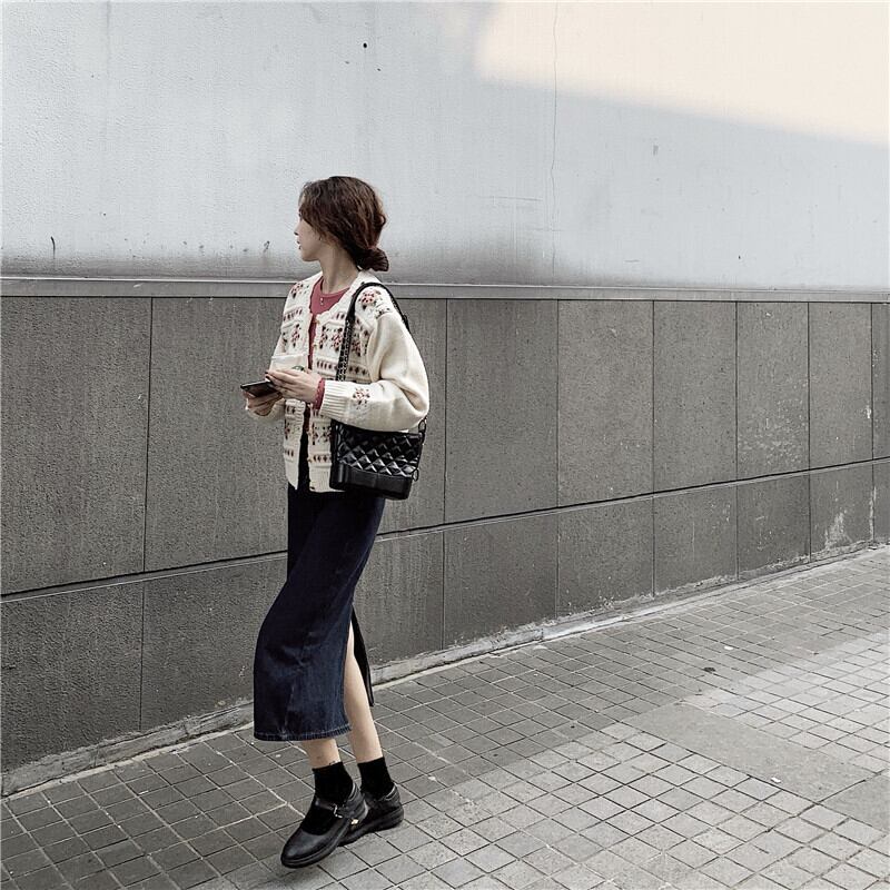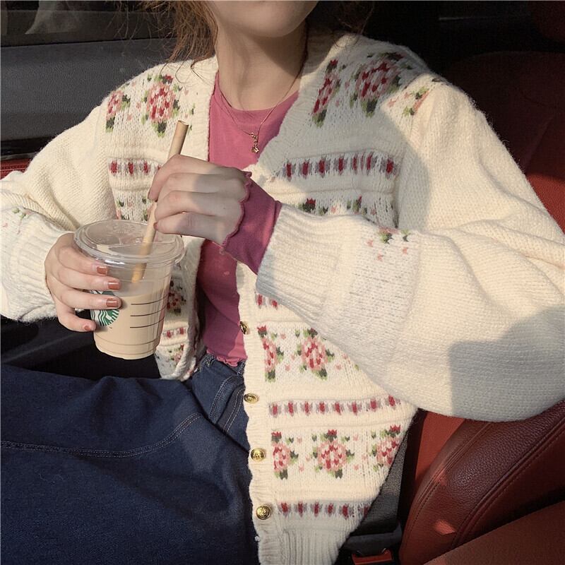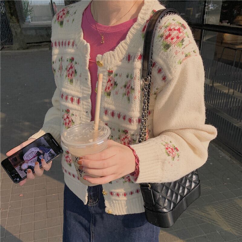 スタンダードジャカードゴールドバックルニットカーディガンスプリング秋物スタイル韓国ファッションルーズセーター レディース レトロ 春物 オータム SPM46202320776