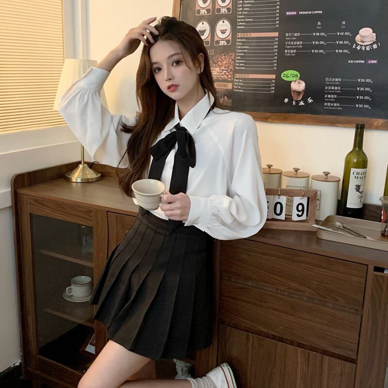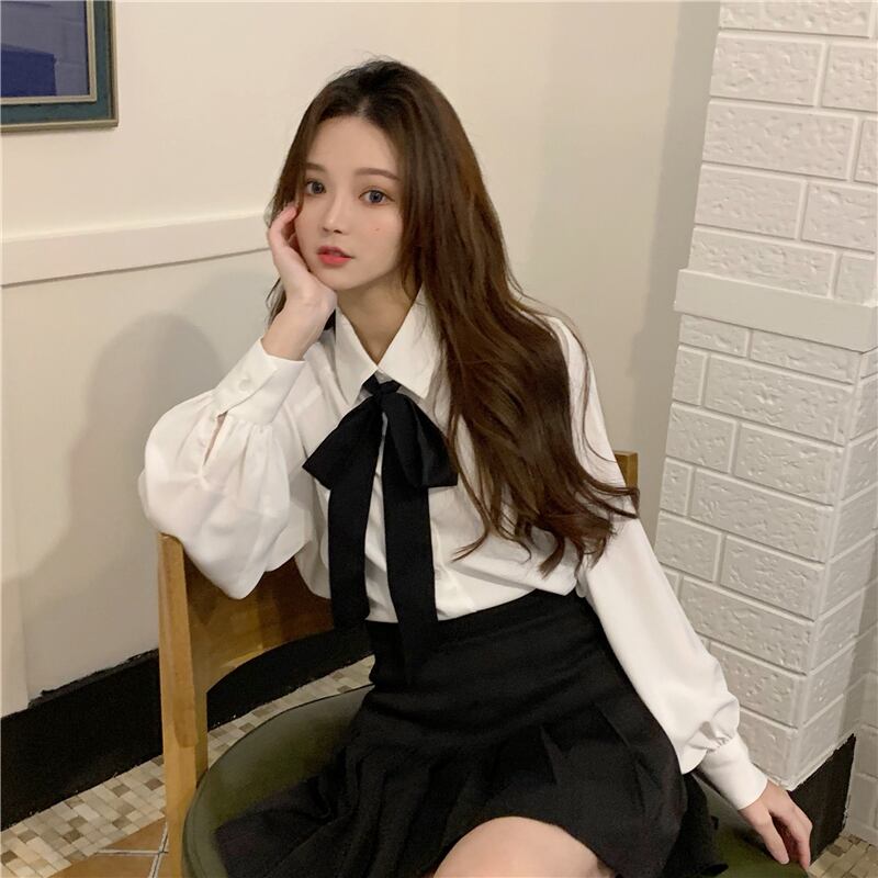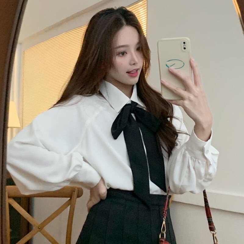 シフォンシャツ レディーススプリング秋物トップス スタンダードホワイト ロング レトロ 春物 オータム 長袖 SPM4720736005