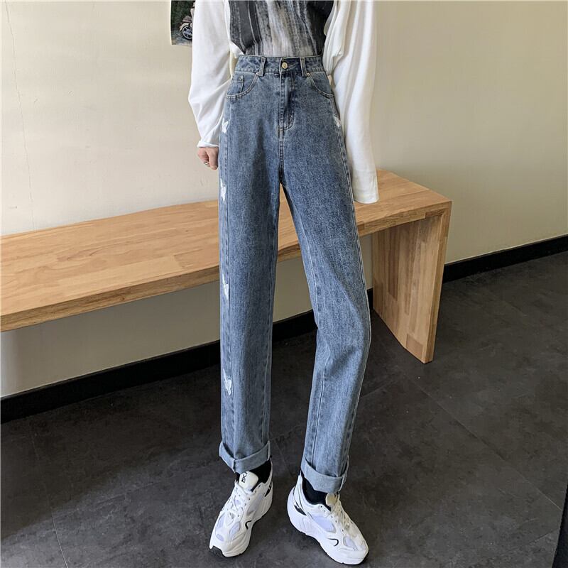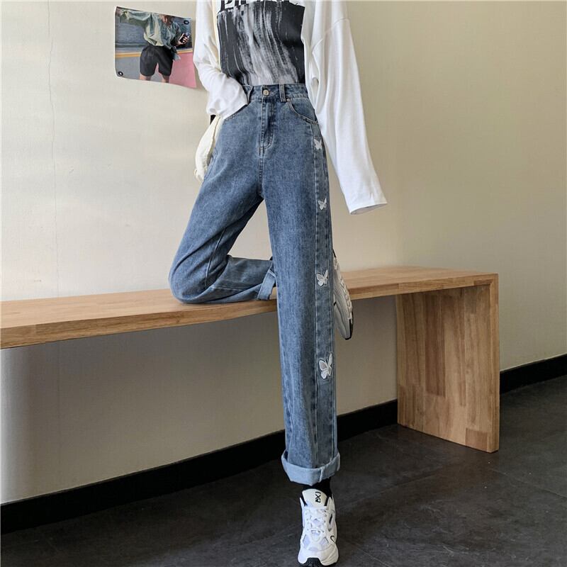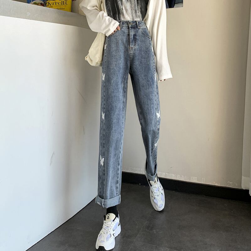 スプリング秋物パンツ Butterflyデザイン 刺繍ルーズジーンズ ハイウェスト 春物 オータム ウエスト SPM6871597189
