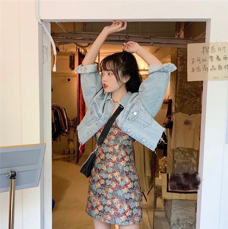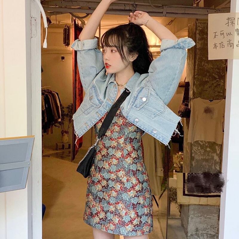スプリングレディーススタンダードスカート ブルーショートジャケット レトロ 春物 SPM11035593161