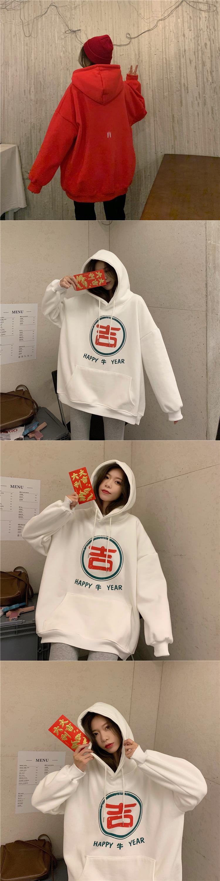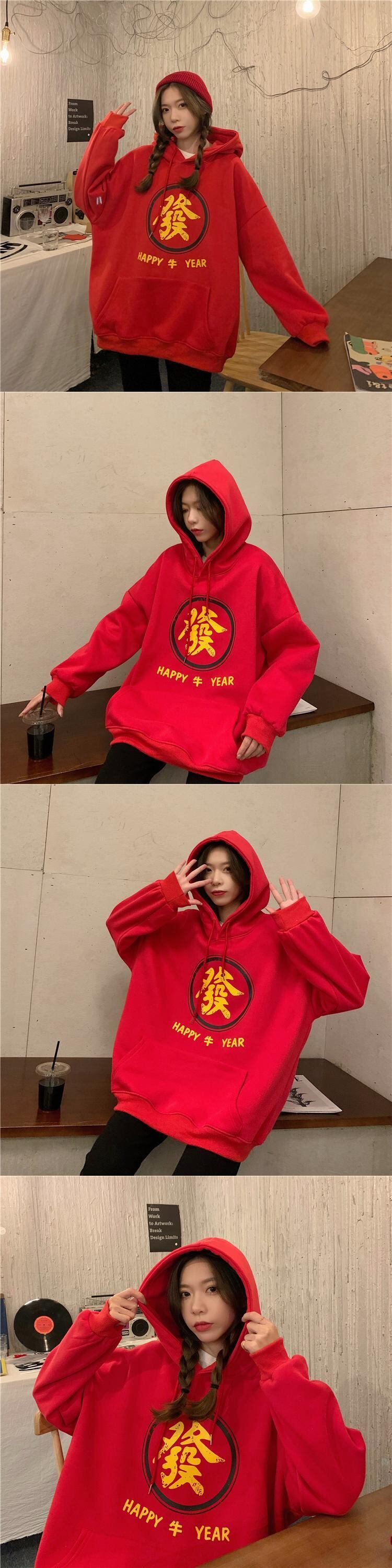 レッド厚みセーター スプリング秋物韓国ファッションルーズフードジャケット 春物 オータム スタイル SPM20332761030