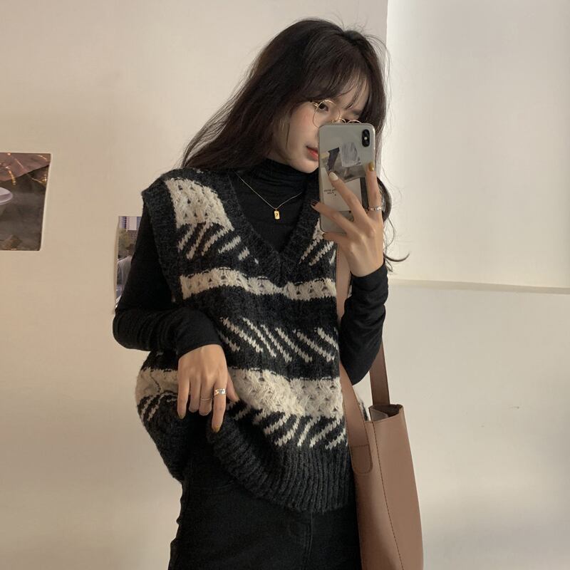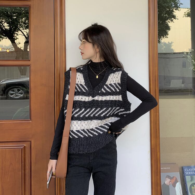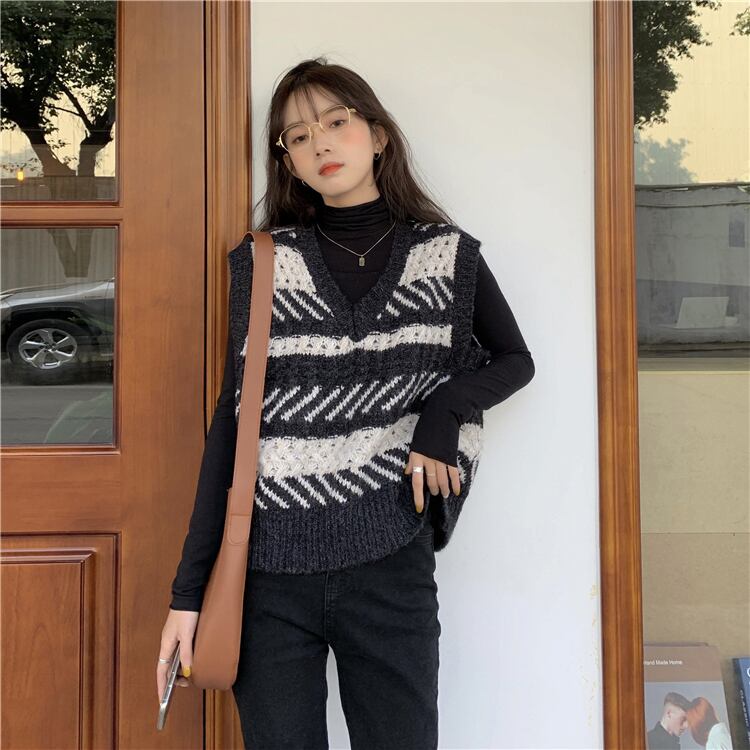 ストライプニットスプリング韓国ファッションスタイルスタンダード レトロ 春物 SPM77523146284