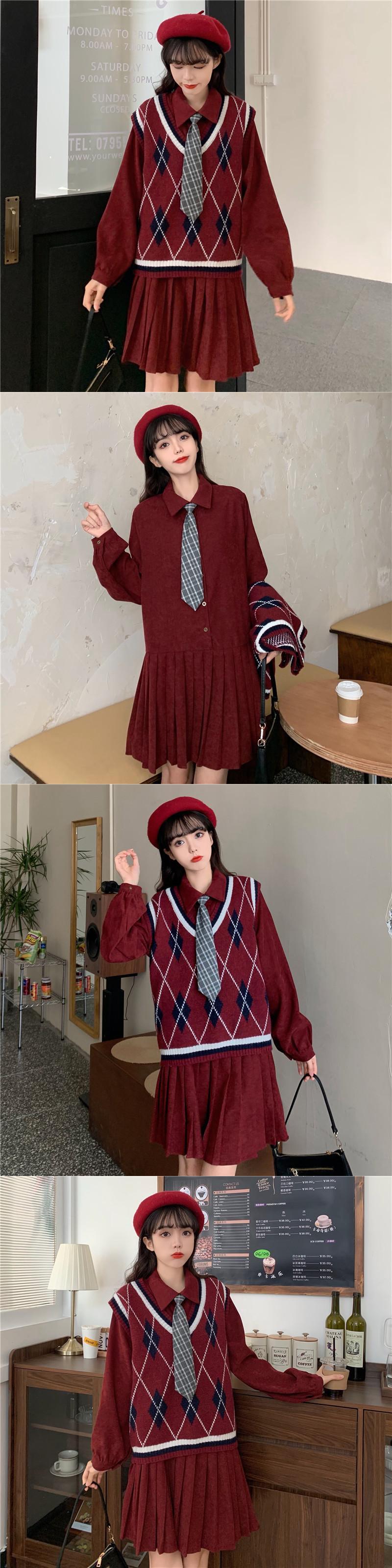 色:ブラックベストワンピース,ダークブルーベストワンピース,ブルゴーニュベストワンピース,黒のスカート+ネクタイ,ダークブルーのスカート+ネクタイ,バーガンディスカート+ネクタイ