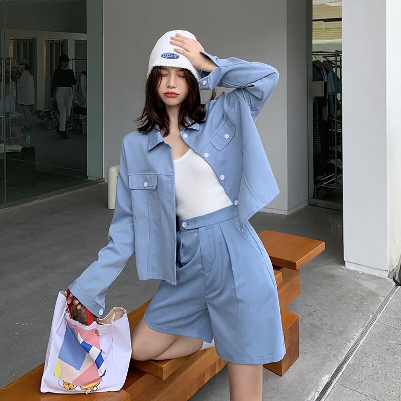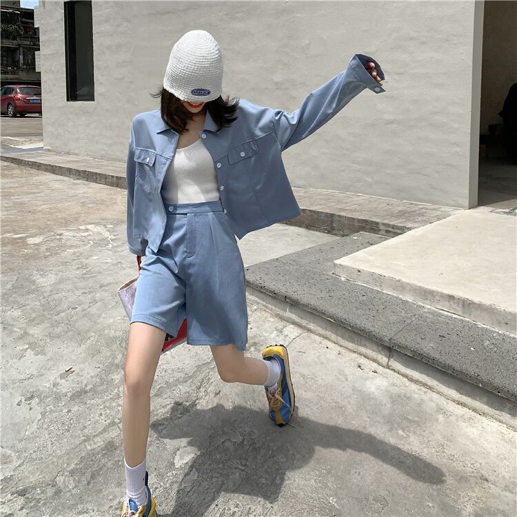 色:コートブルーワンピース,ジャケットブラックシングル,ショーツブルーワンピース,黒のショートパンツ