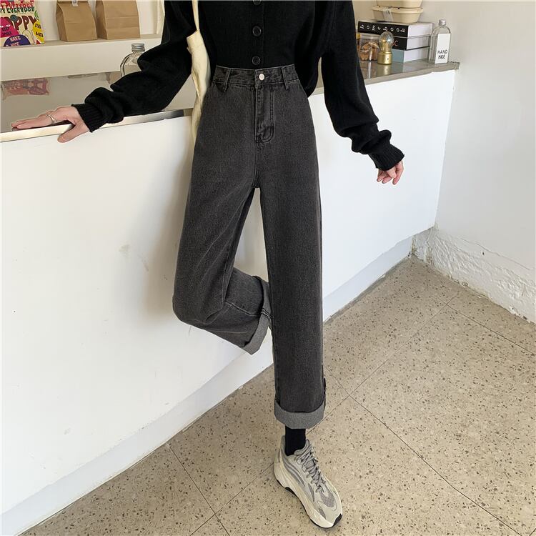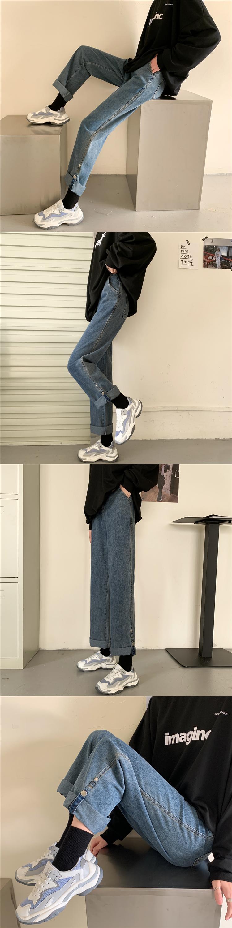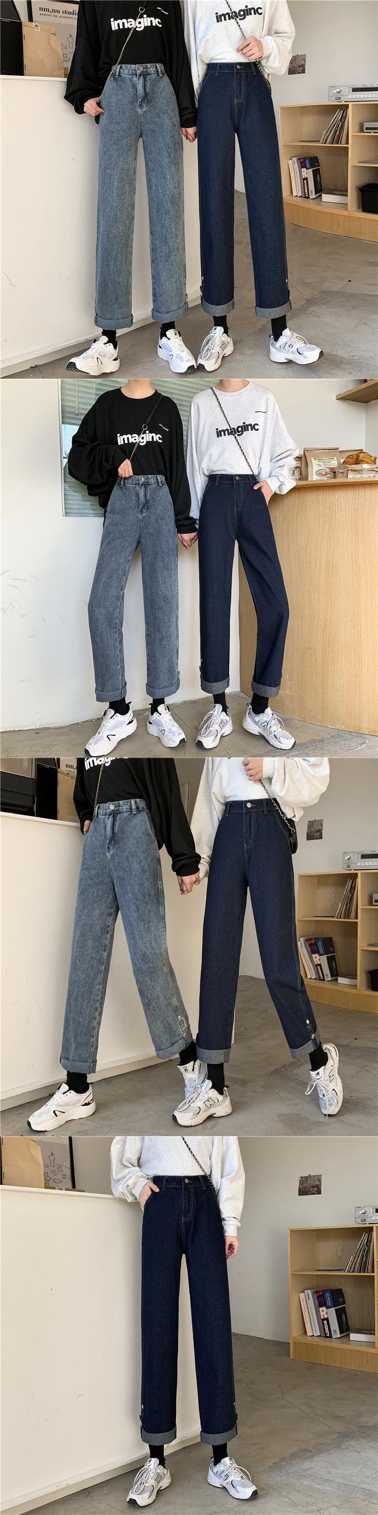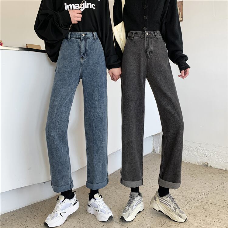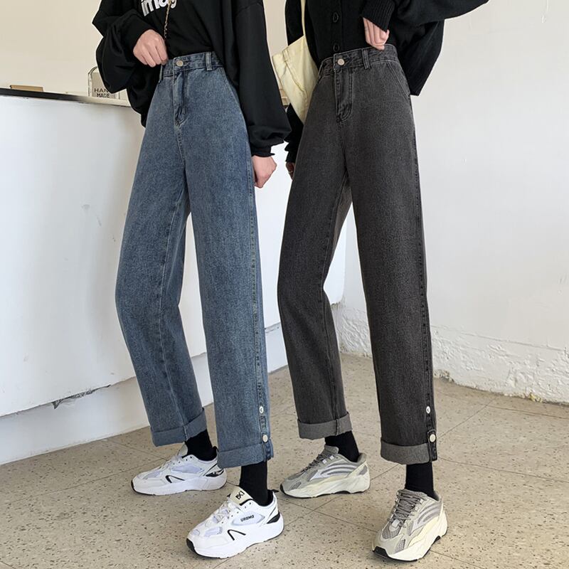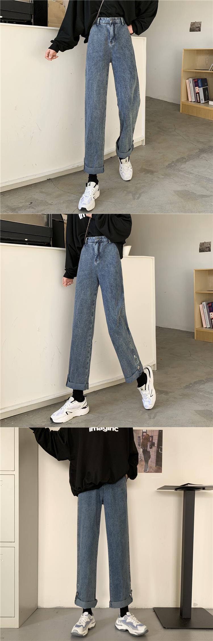 ルーズスプリング秋物韓国ファッション薄手ハイウェストウェストスタンダードジーンズ レディース レトロ 春物 オータム スタイル ウエスト SPM11042408381