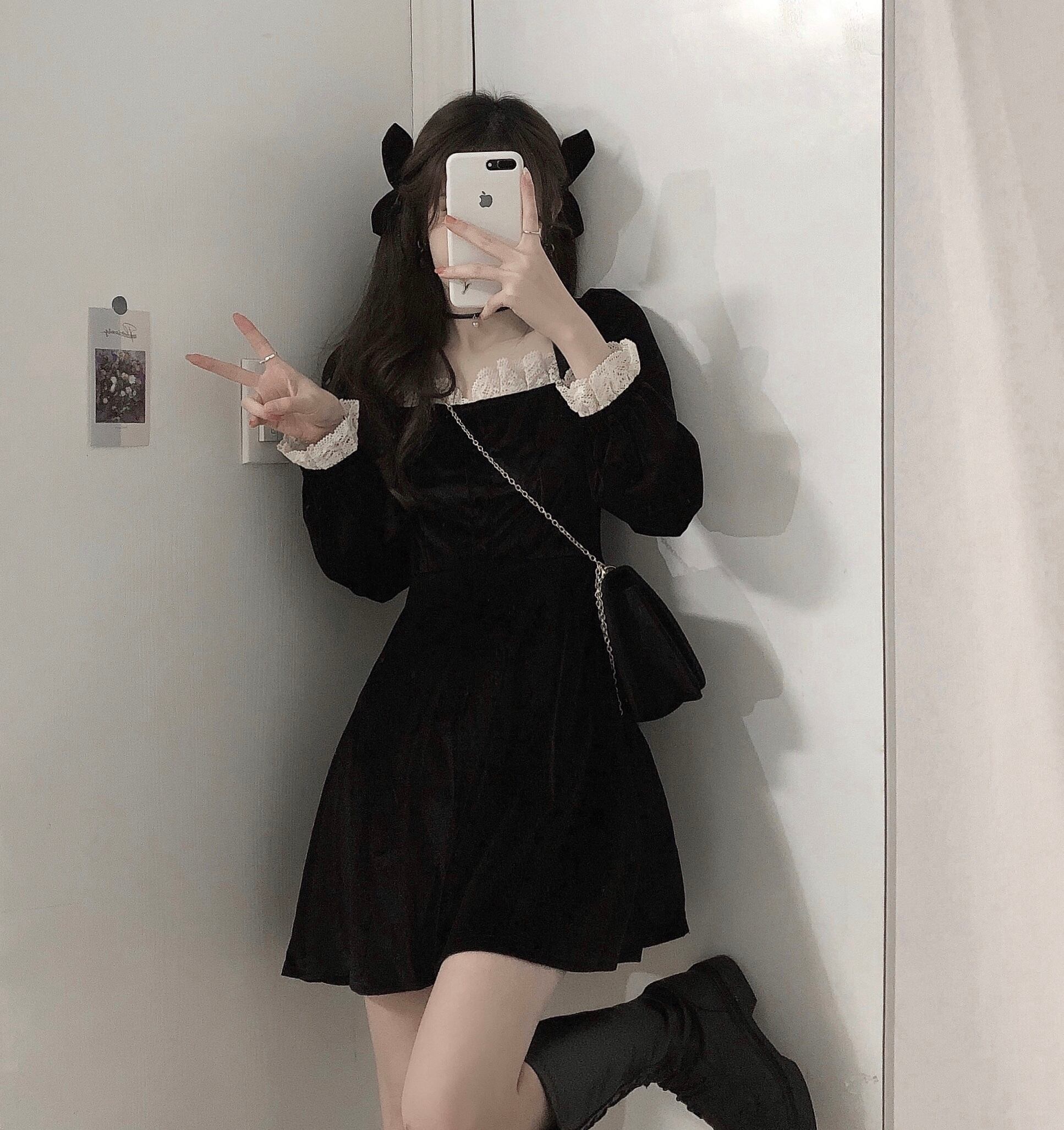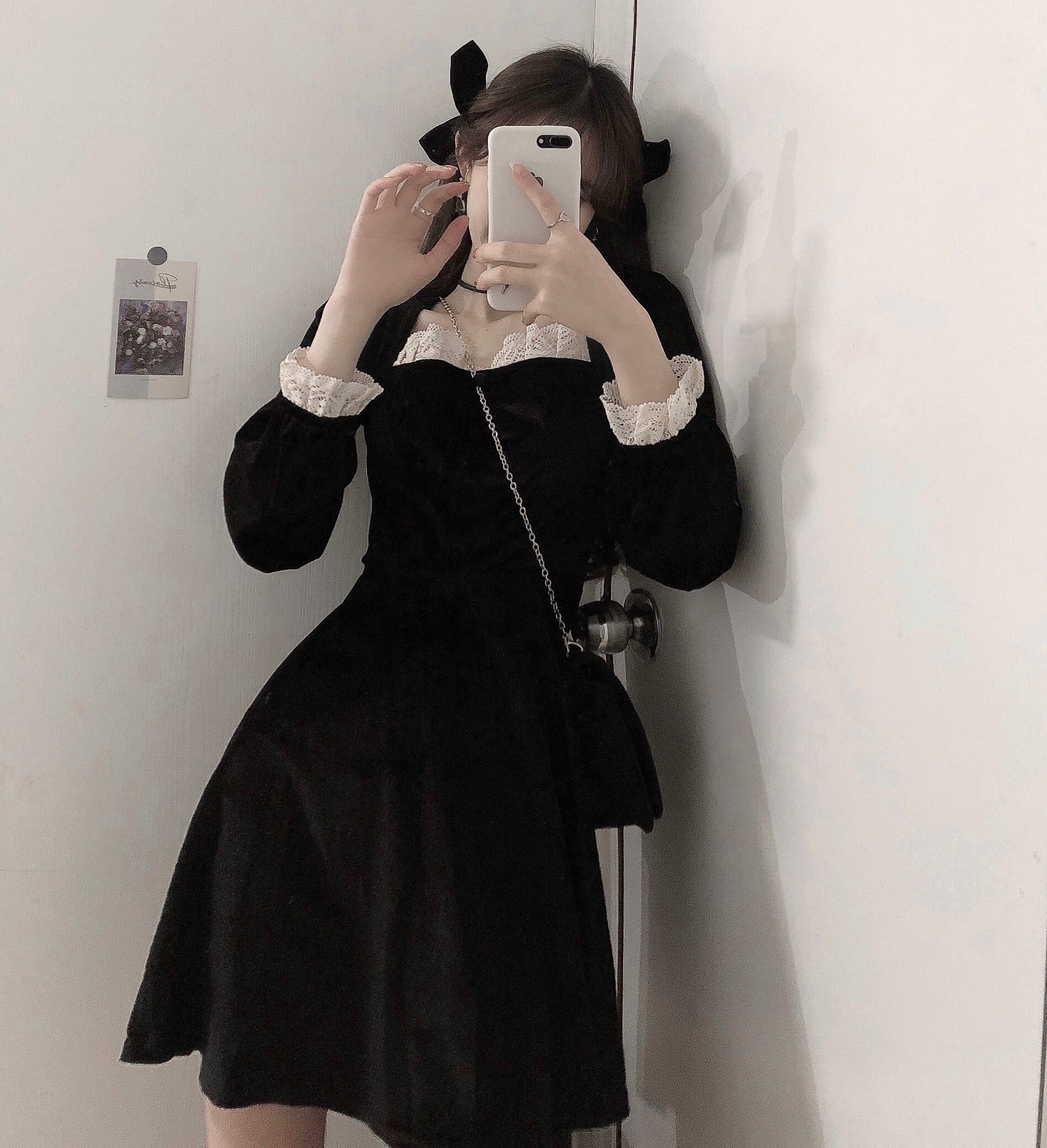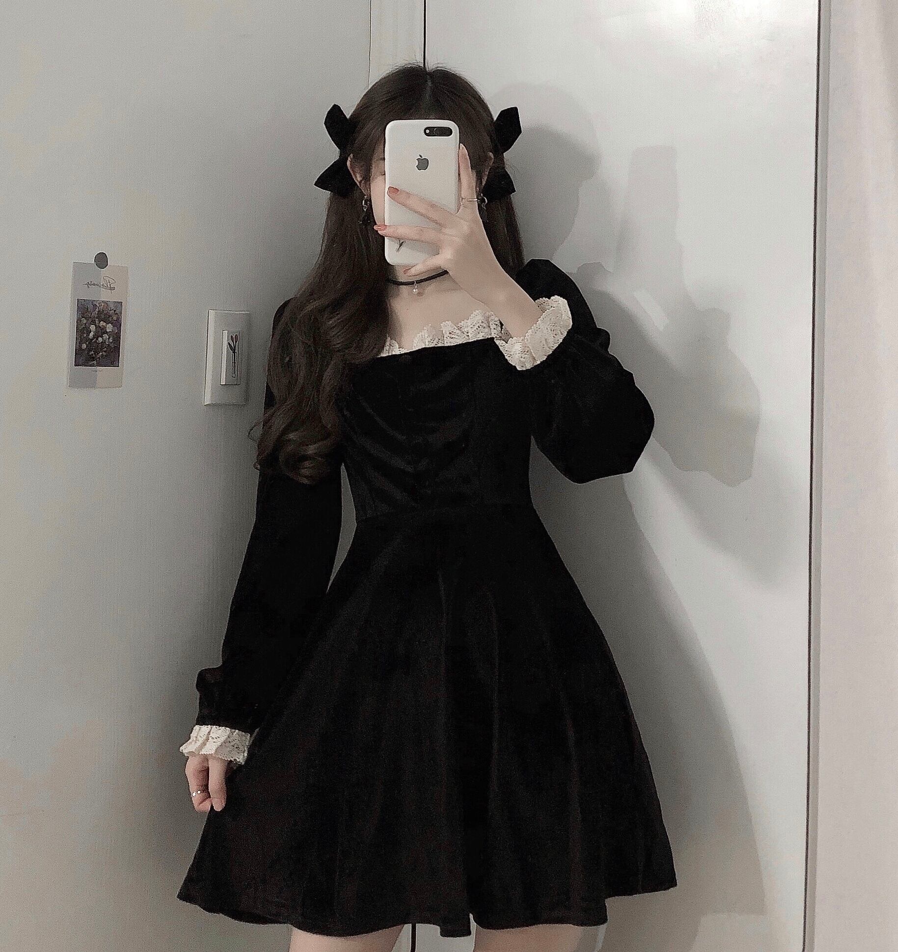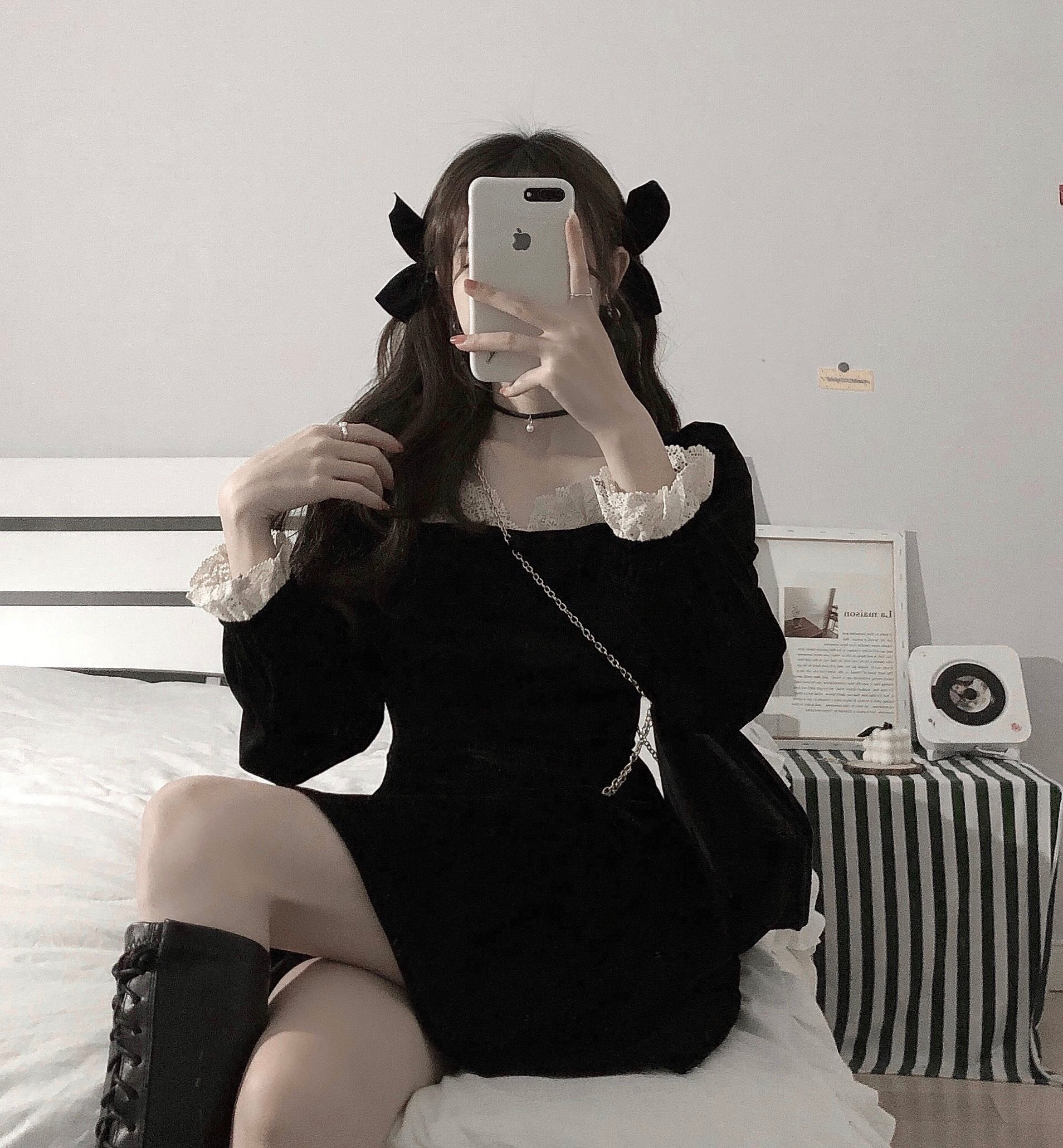 スプリングスタンダードレースワンピースレディースブラックウェストスカート レトロ 春物 ウエスト SPM97275634756