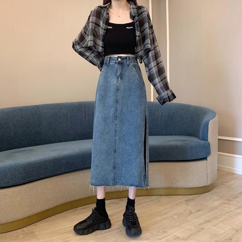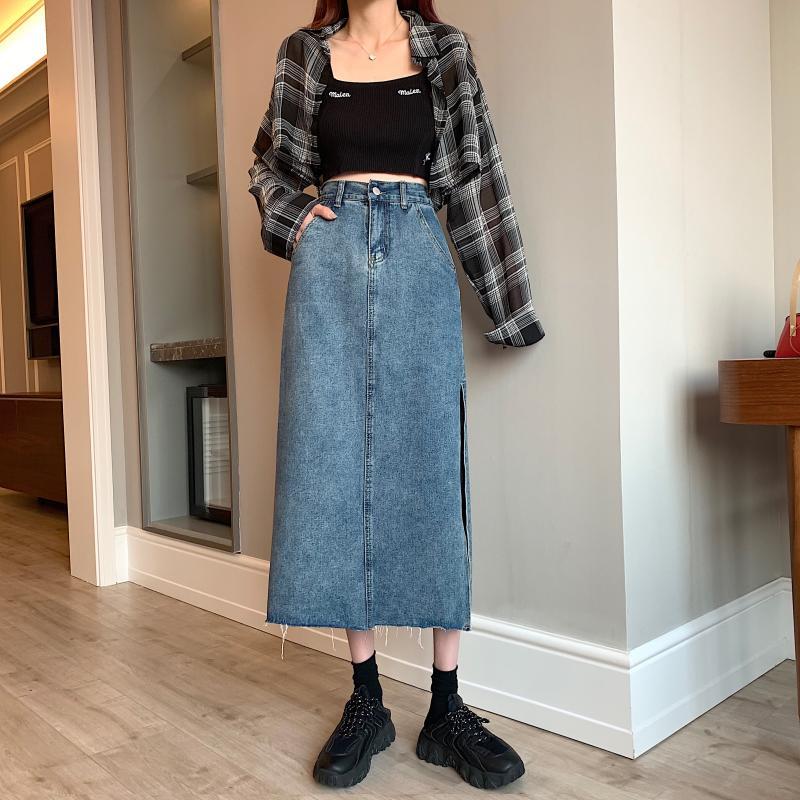 スタンダードスカート レディーススプリングハイウェストウェストスリムAライン レトロ 春物 ウエスト ミドル丈 SPM92175009916