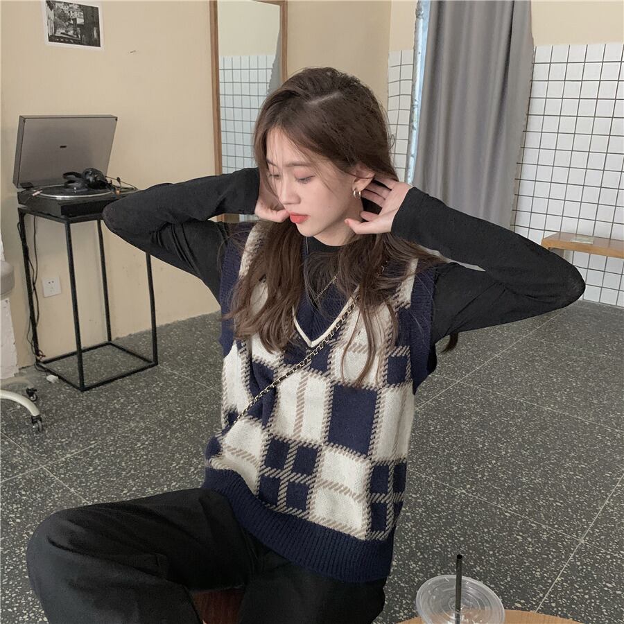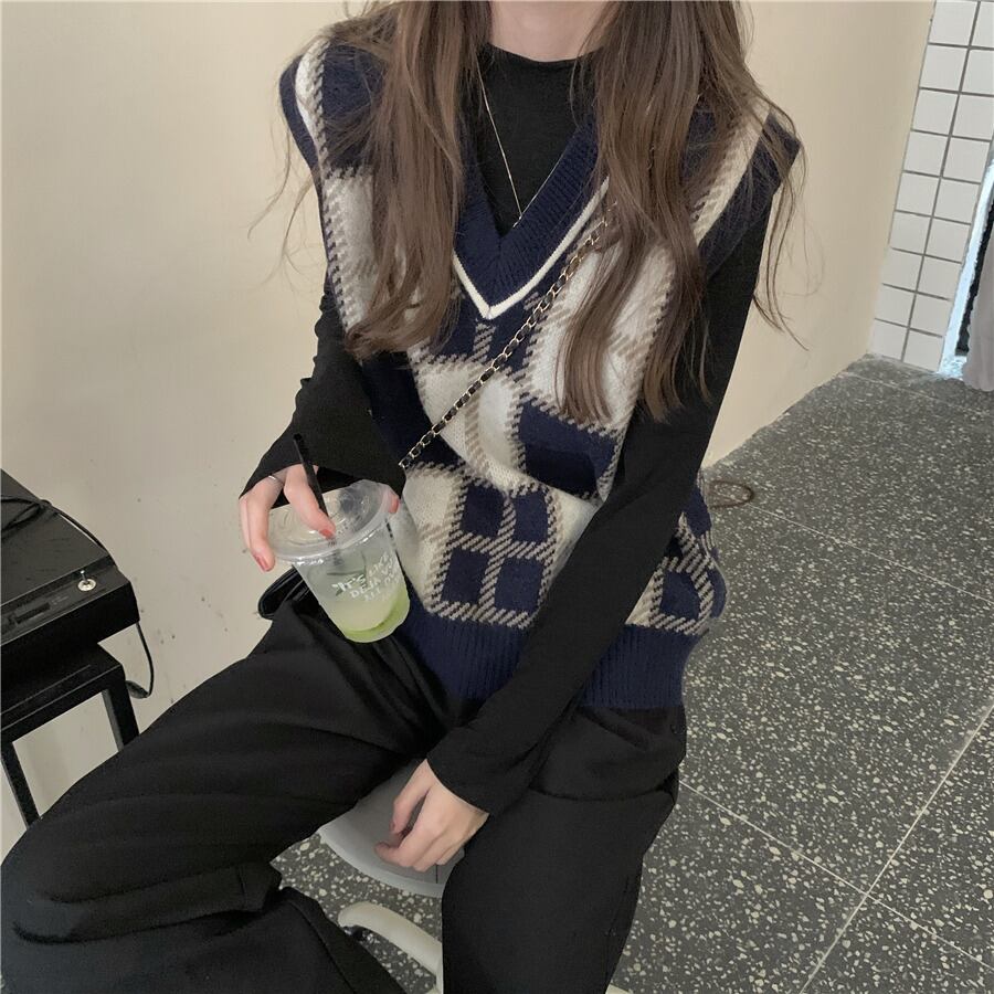 ルーズニットレディーススプリング秋物スタイル韓国ファッションVネックノースリーブ 春物 オータム ウエスト SPM35030442128