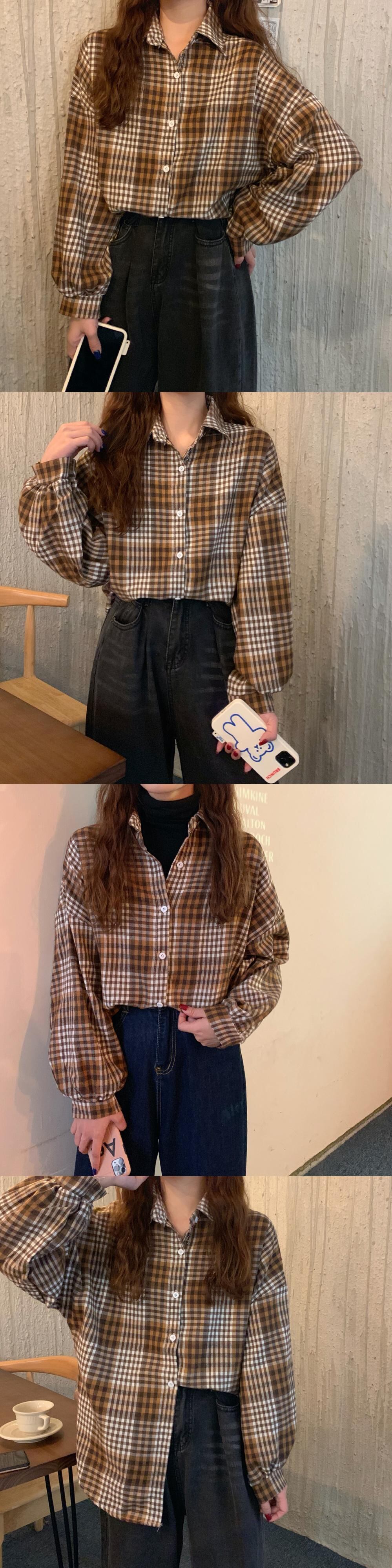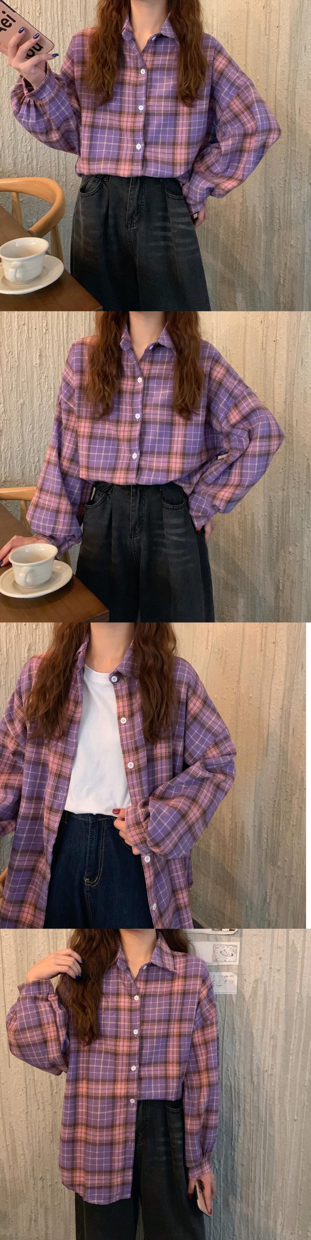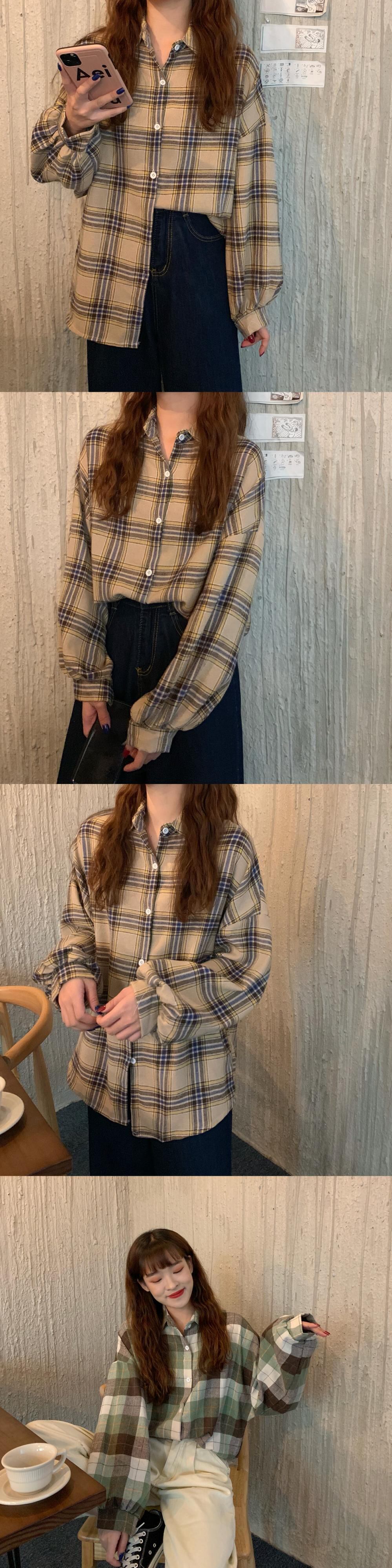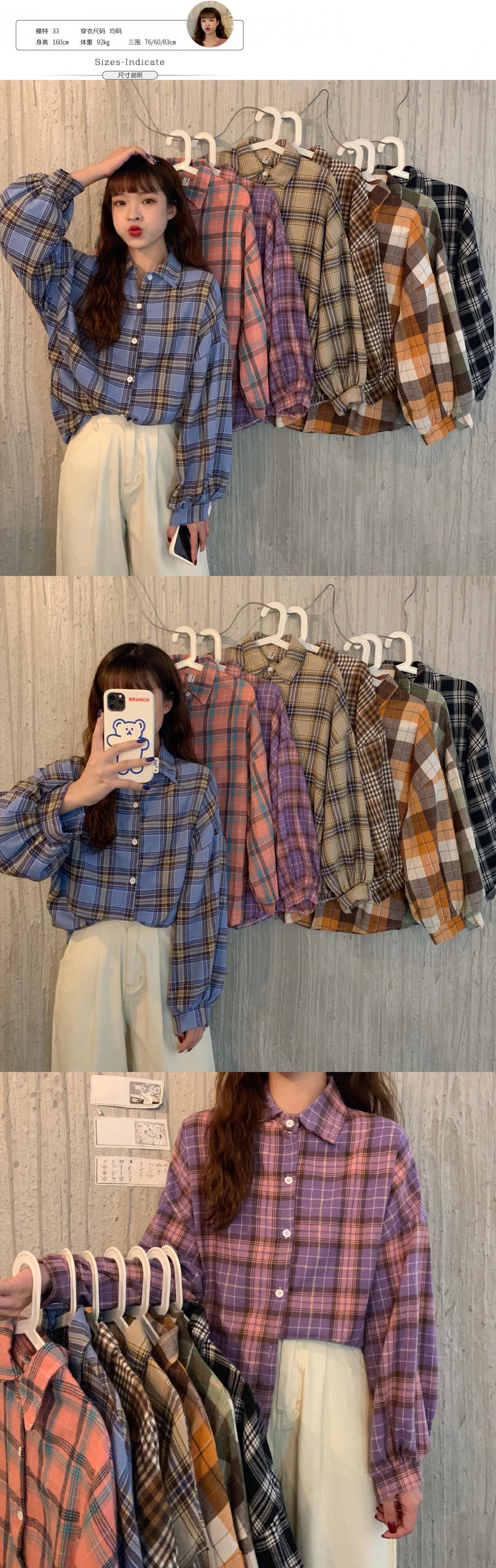 スタンダード格子柄シャツ スプリング韓国ファッションルーズジャケット ロング レトロ 春物 スタイル 長袖 SPM93824709071