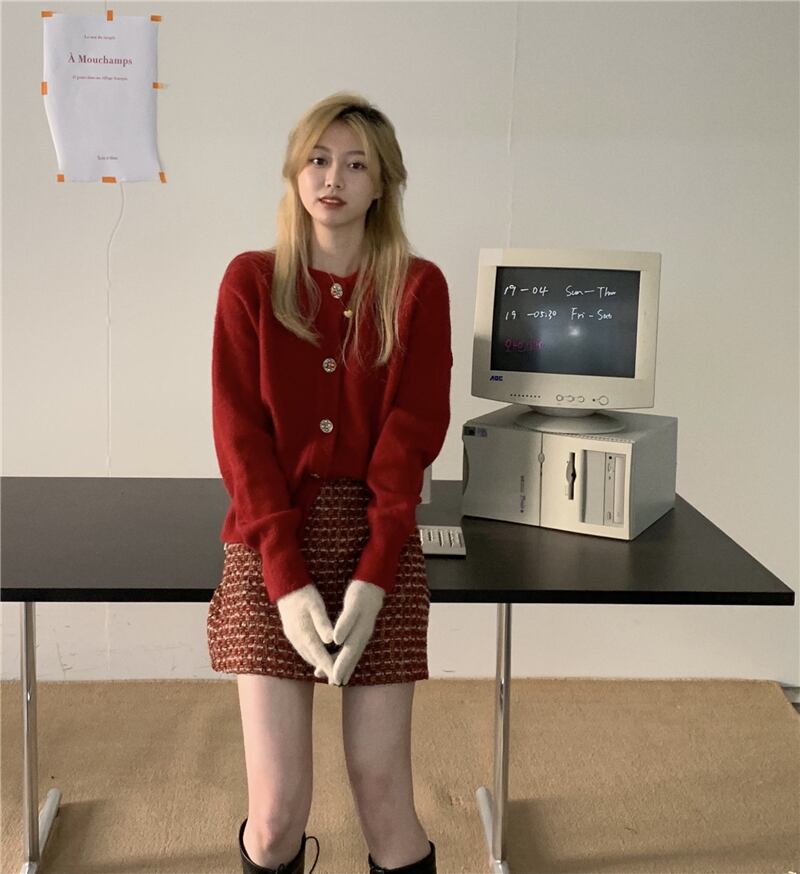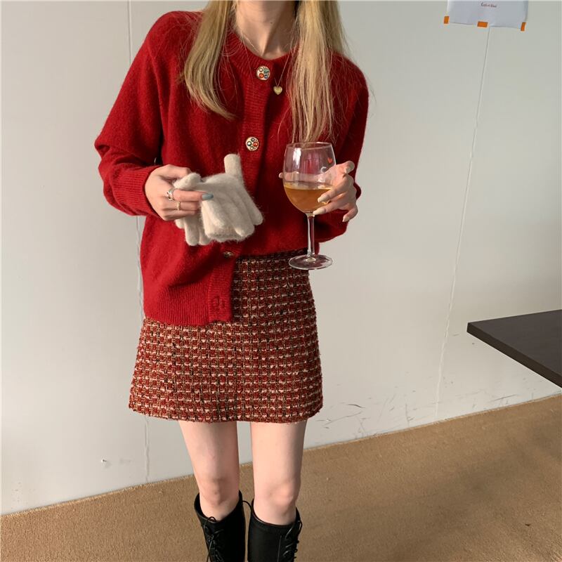スプリングレディースルーズショートニットセーター ハイウェストウェスト薄手Aラインスカート 春物 ウエスト SPM89731928900