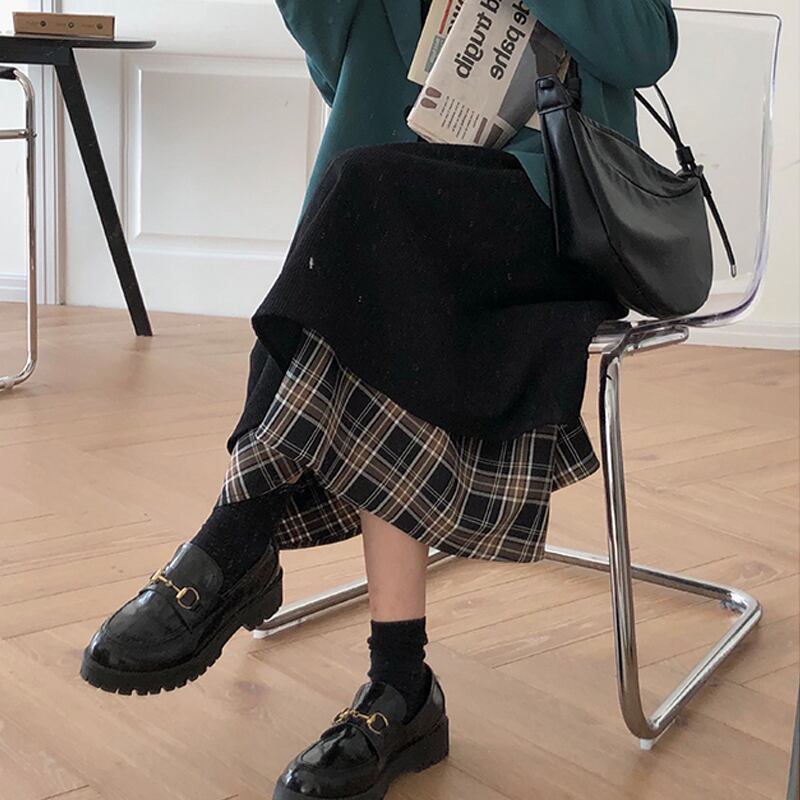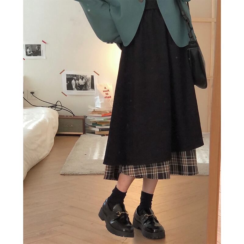 スタンダードコーデュロイスカート レディーススプリング秋物カラー格子柄Aライン レトロ 春物 オータム ステッチ ミドル丈 SPM65271273225