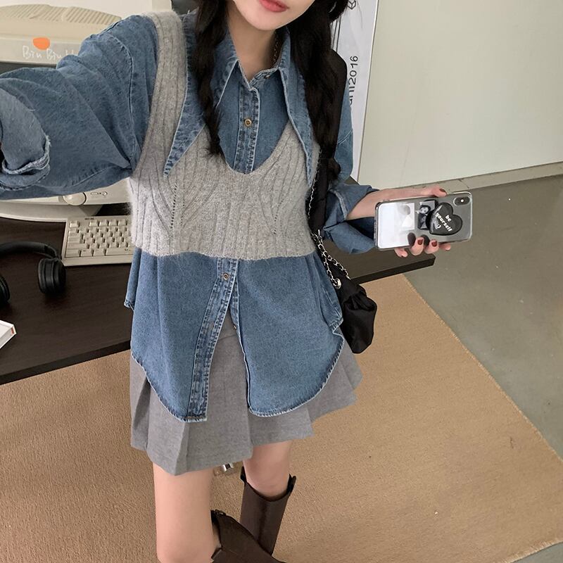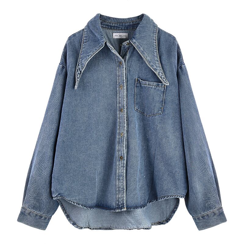 シャツ レディーススプリング韓国ファッションルーズスタンダードブルー ロング レトロ 春物 長袖 SPM21158575951