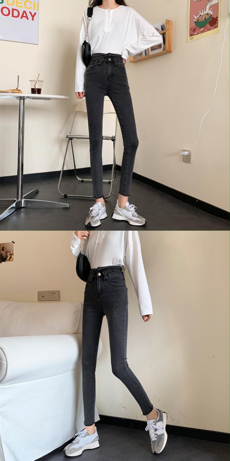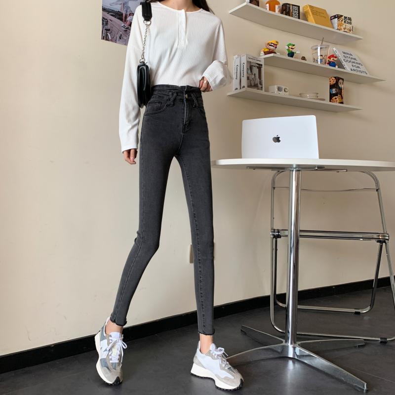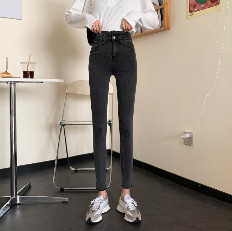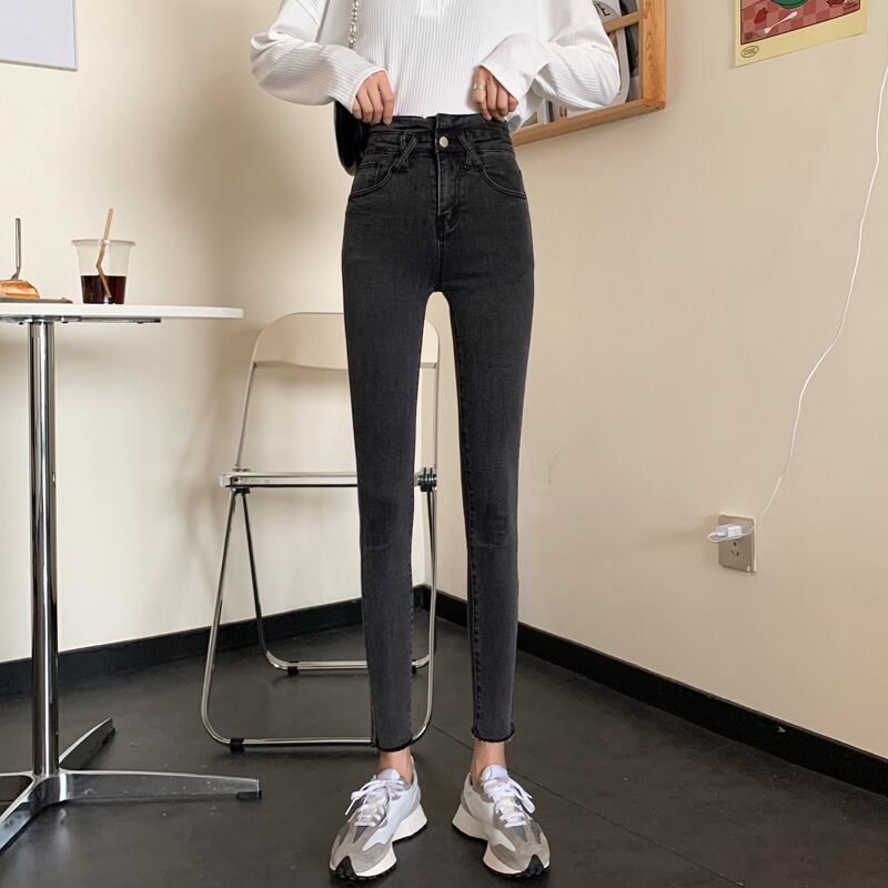 スプリング韓国ファッションスリムパンツ 薄手ハイウェストウェストジーンズ レディース 春物 スタイル ウエスト SPM2428556526
