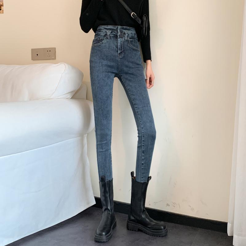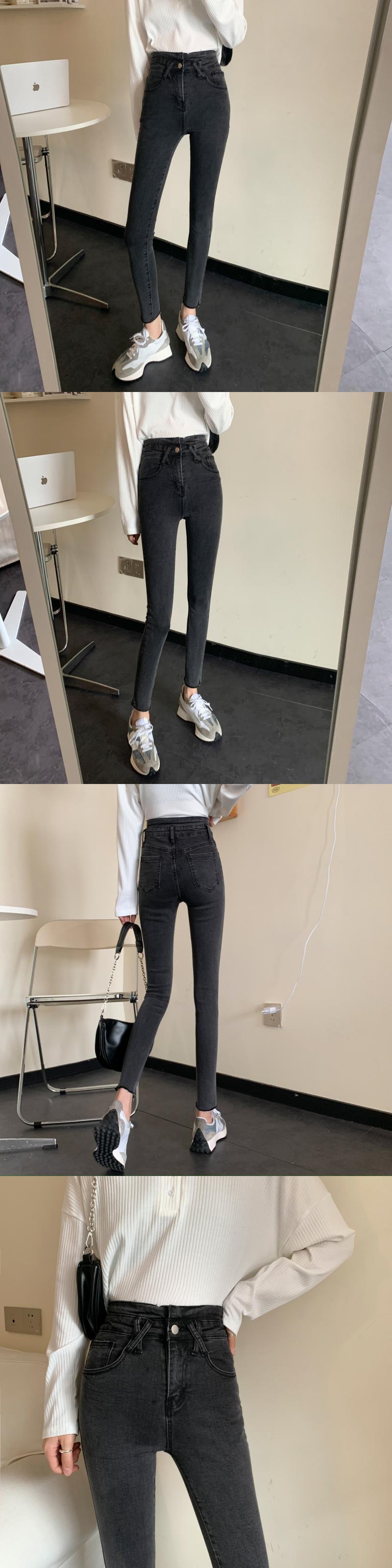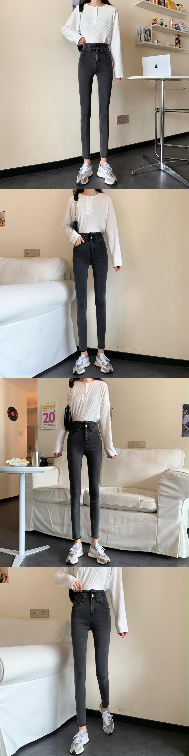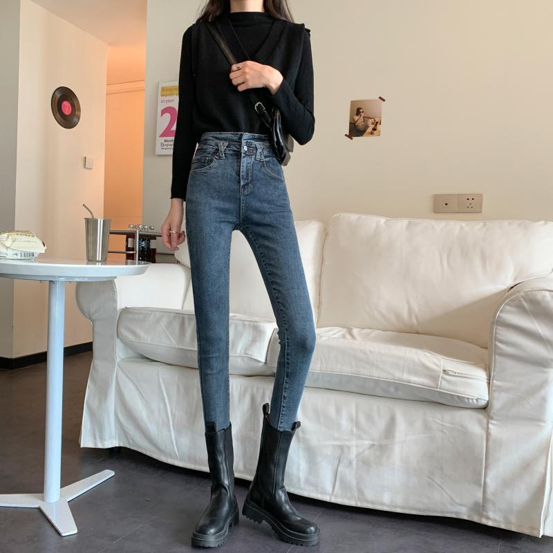 スプリング韓国ファッションスリムパンツ 薄手ハイウェストウェストジーンズ レディース 春物 スタイル ウエスト SPM2428556526