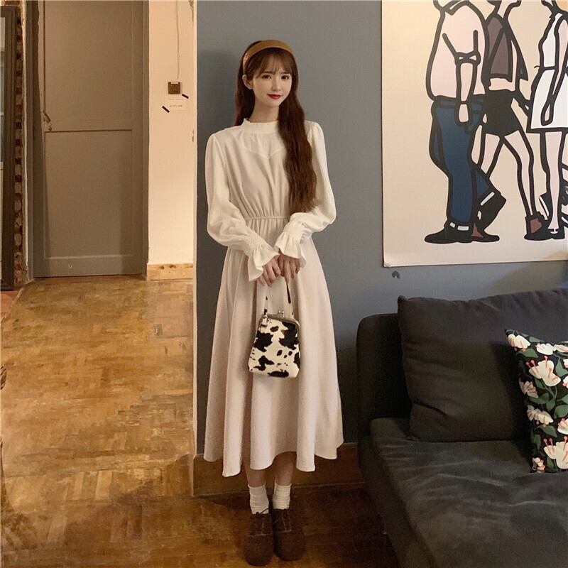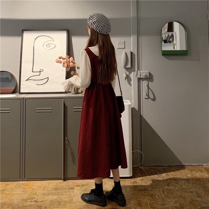 スプリングワンピースウェスト薄手スカート 韓国ファッションスタンダードレッドレディース レトロ 春物 ウエスト SPM52119769591
