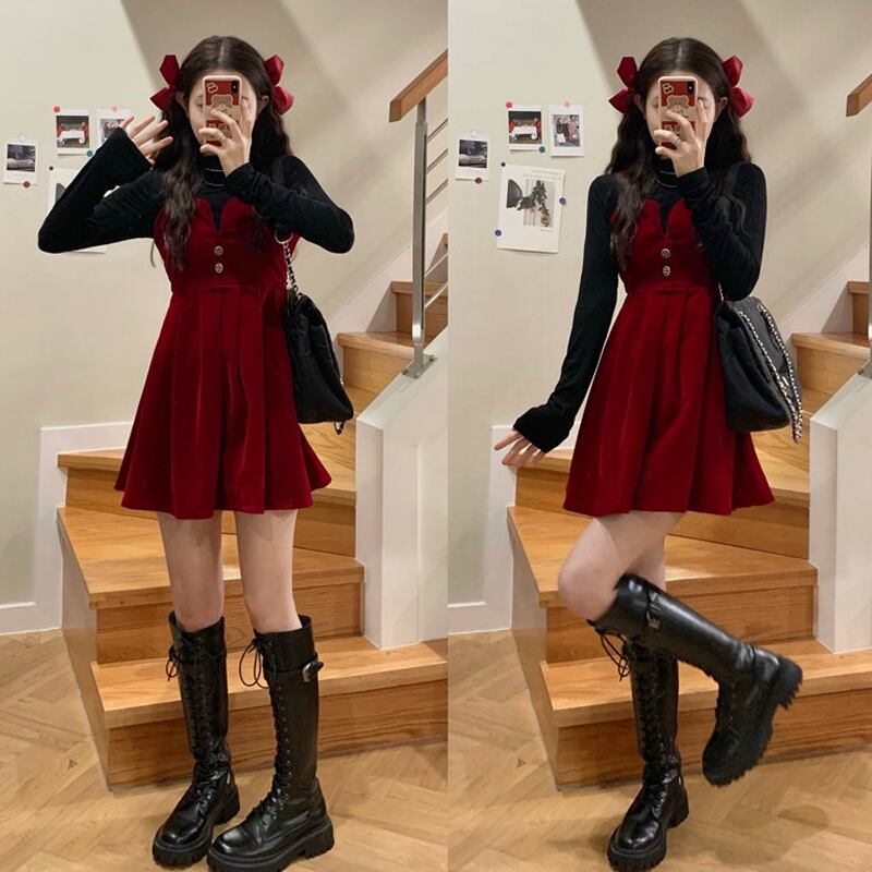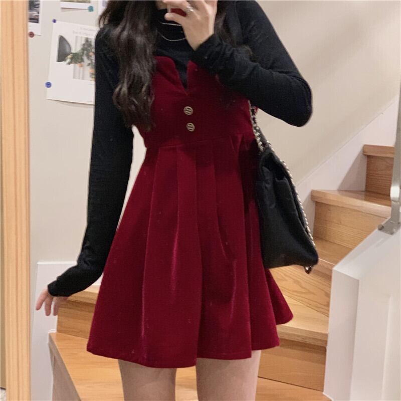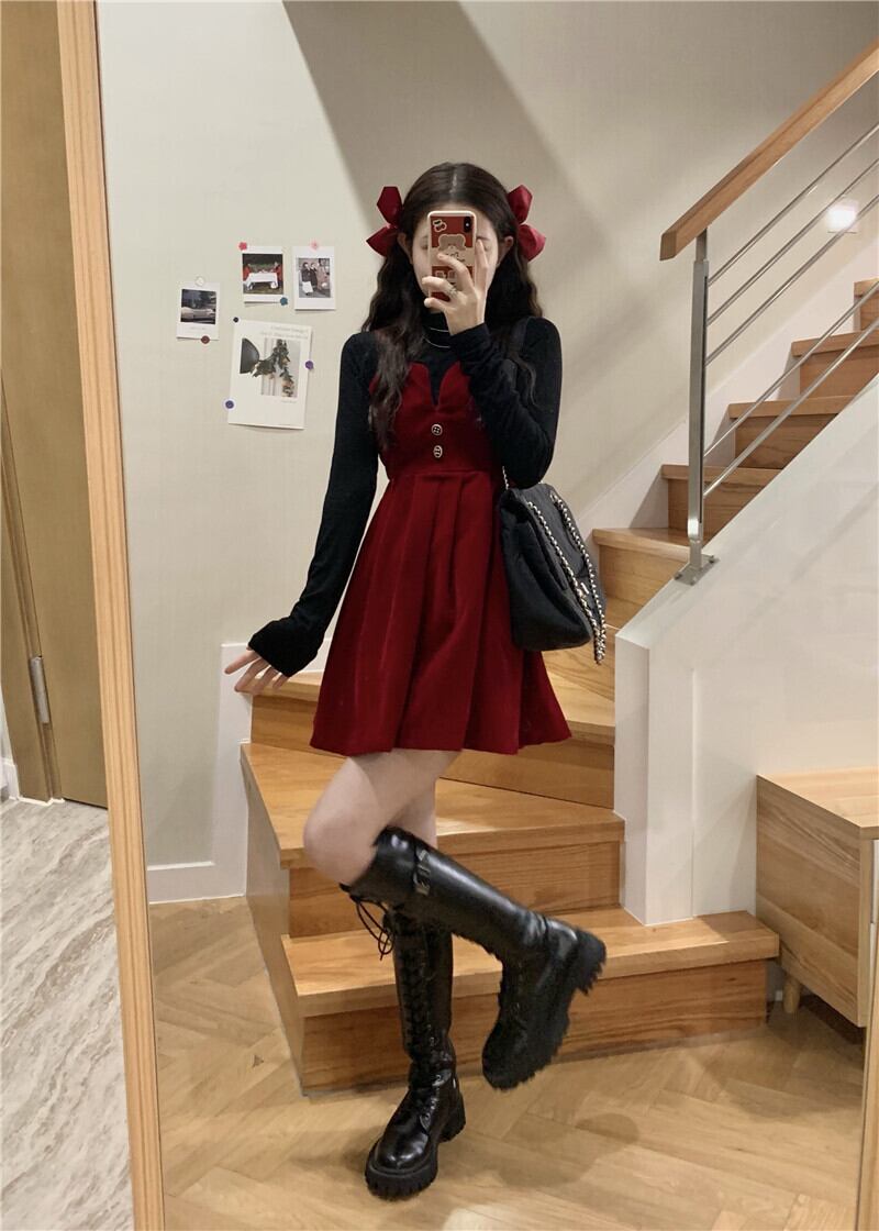 レッドワンピーススタンダード厚みスプリングスカート レトロ 春物 SPM62020754588