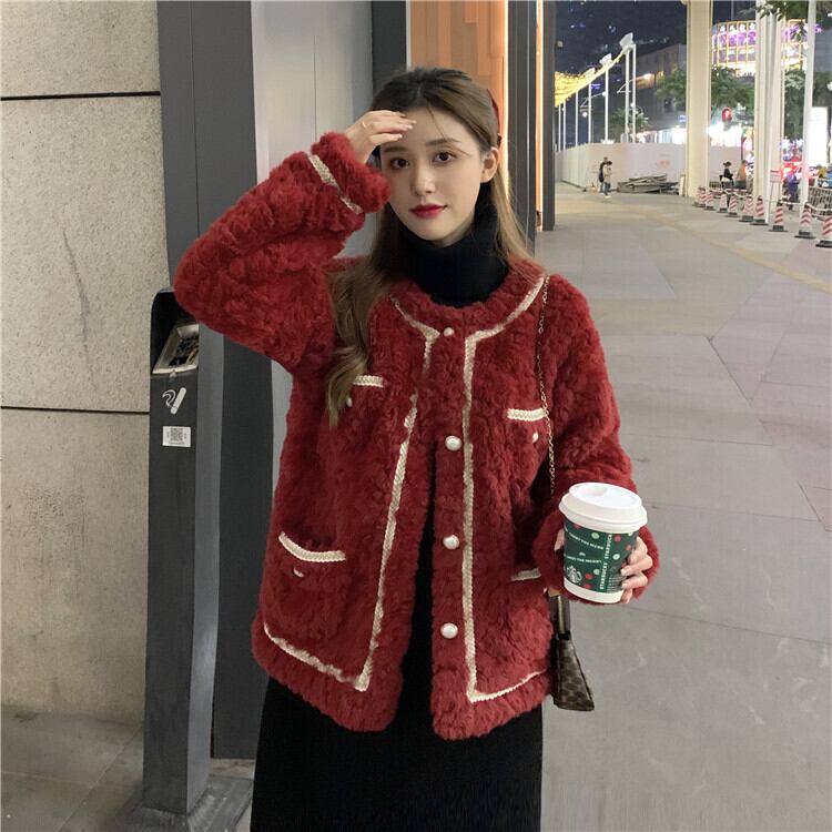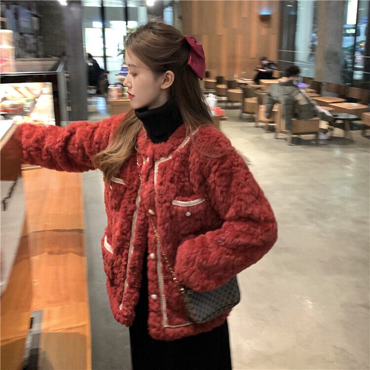 韓国ファッションルーズレッドウールコート レディース秋物ウィンター コットン オータム 冬物 スタイル SPM2882339281