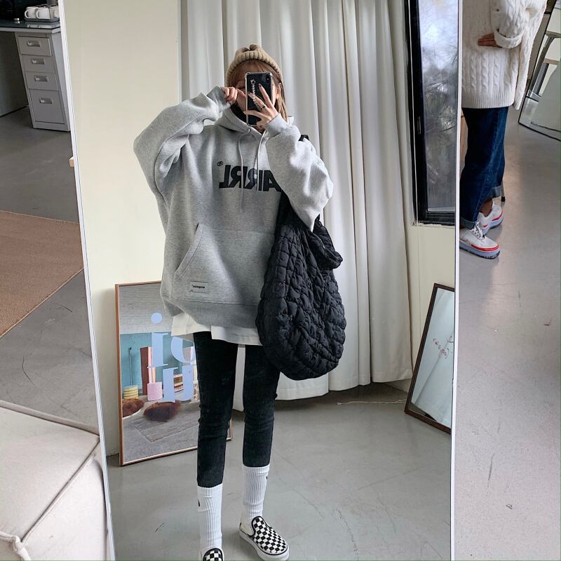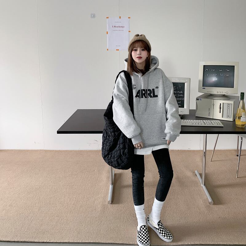 ルーズフードセーター レディーススプリング秋物韓国ファッションスタイルグレー厚みコート 春物 オータム ボーイズ SPM94372173326
