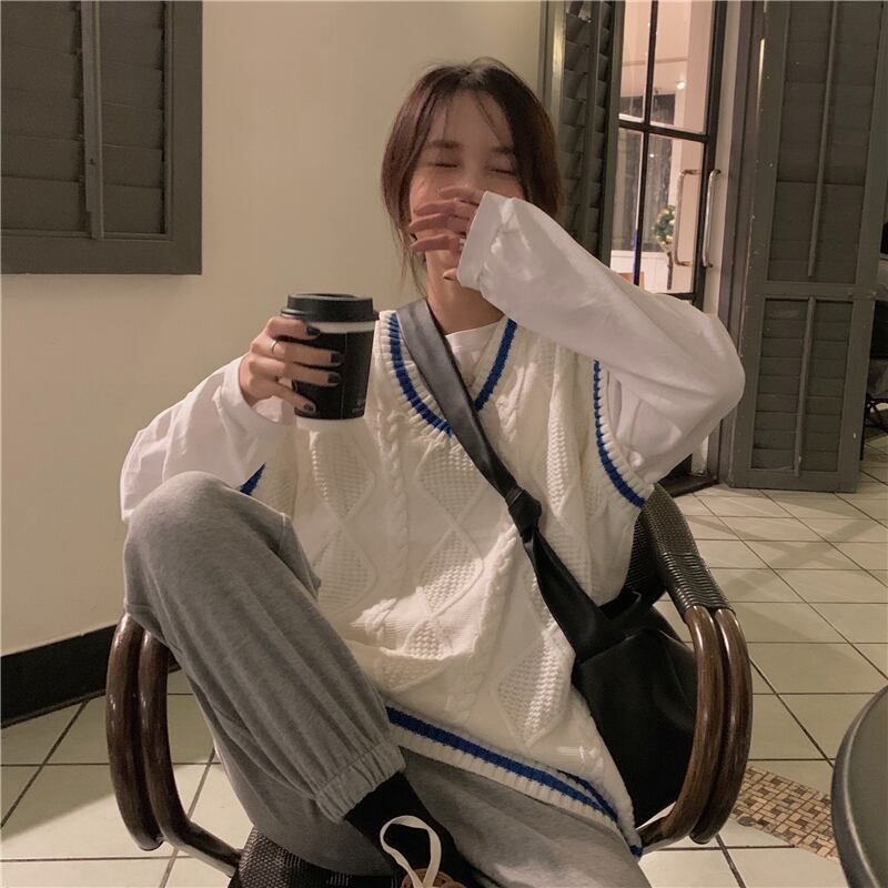 スプリング韓国ファッションルーズセーター ホワイトニットジャケット 春物 スタイル SPM34871983574