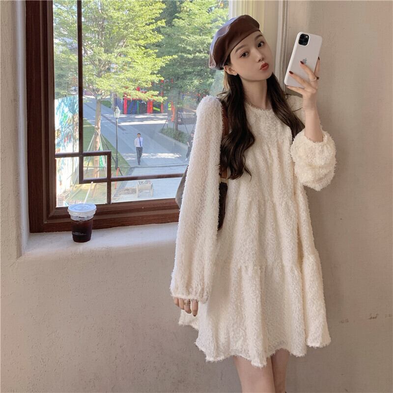 スプリングスカート スタンダード薄手ラウンドネックショートレースワンピースレディース レトロ 春物 Oネック SPM38320761793