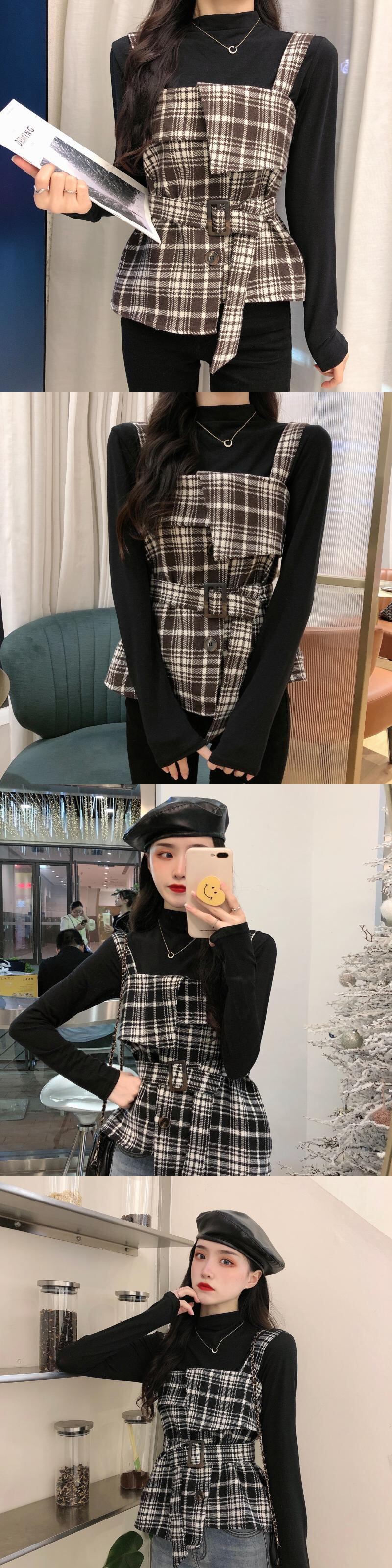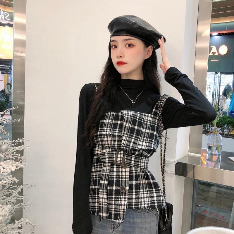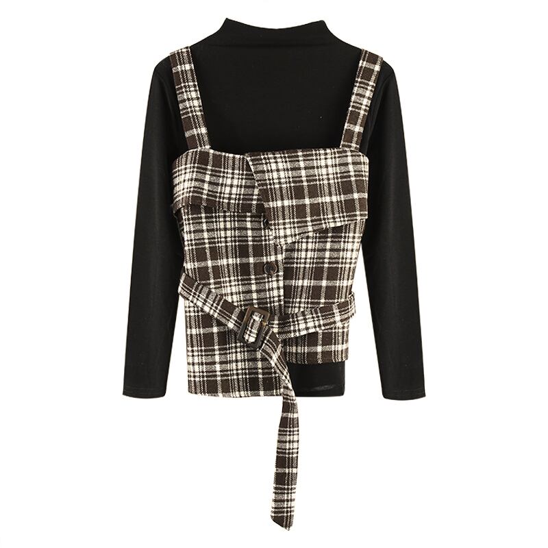 スタイルレディーススプリングスタンダード格子柄ウェストゆったりシャツ セット レトロ 春物 ウエスト SPM63775674410