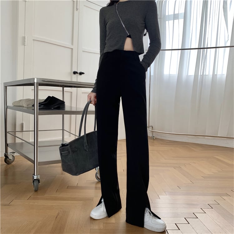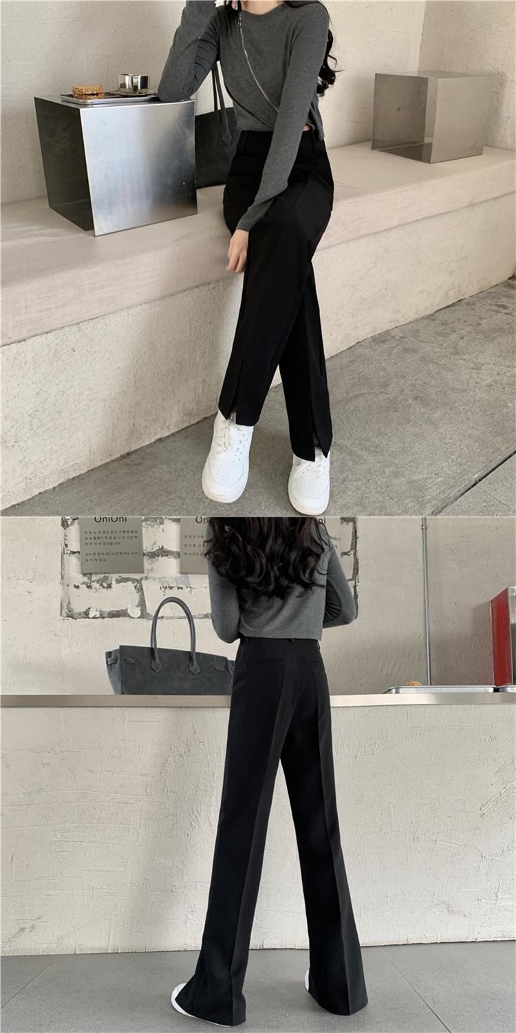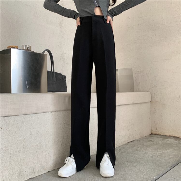 スリットパンツ ルーズスプリング秋物ブラックハイウェストウェストカジュアル 春物 オータム ウエスト SPM99298740823
