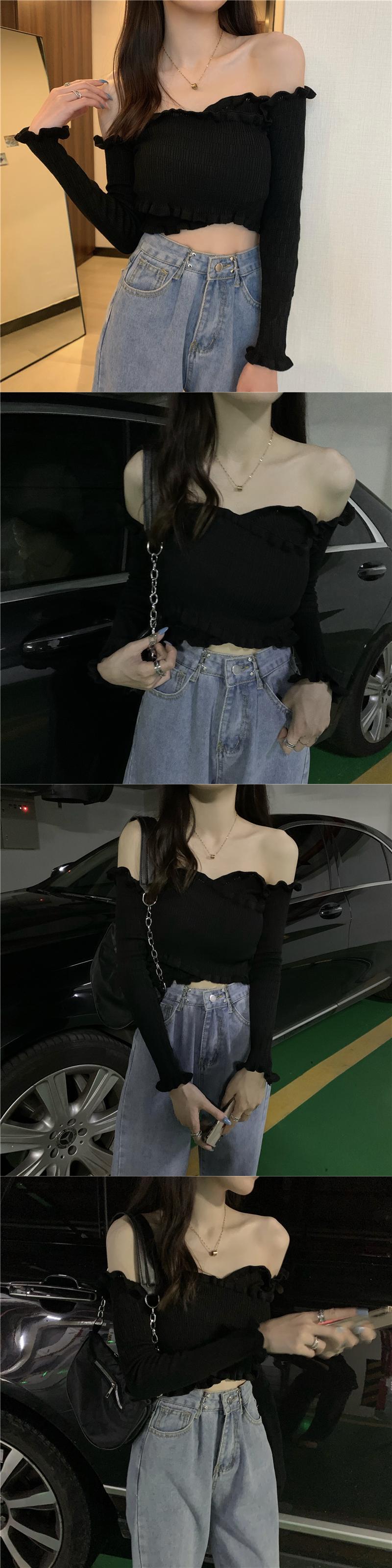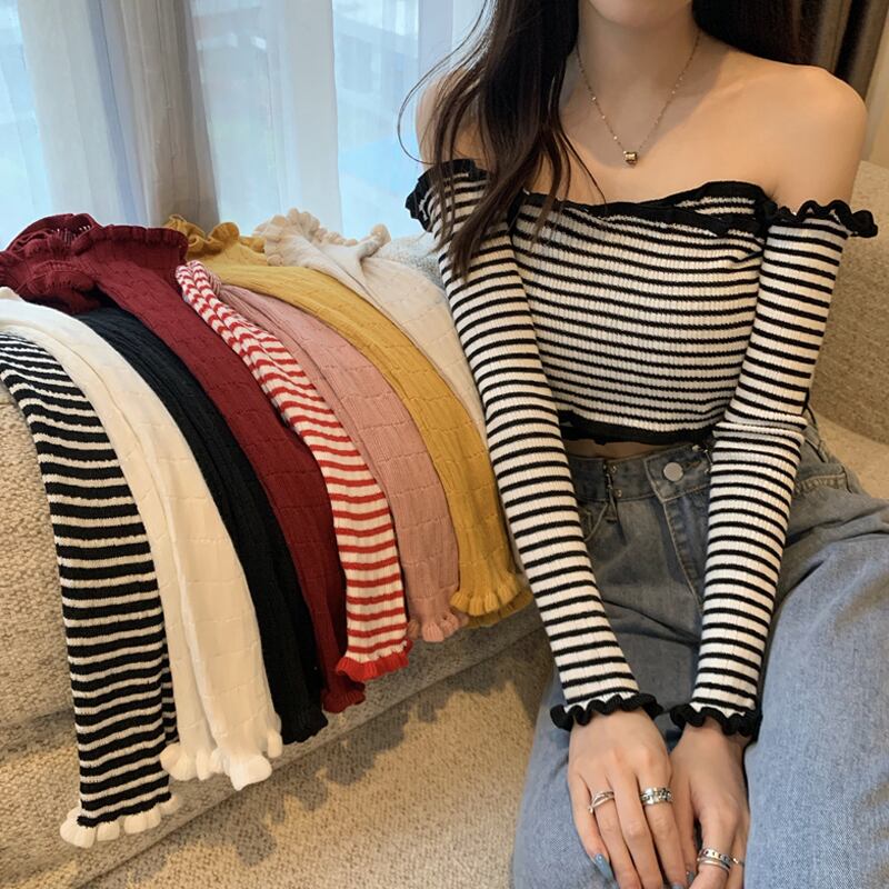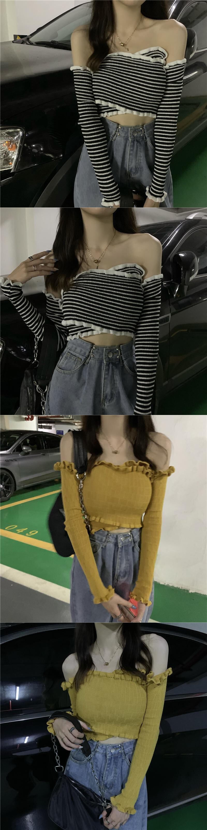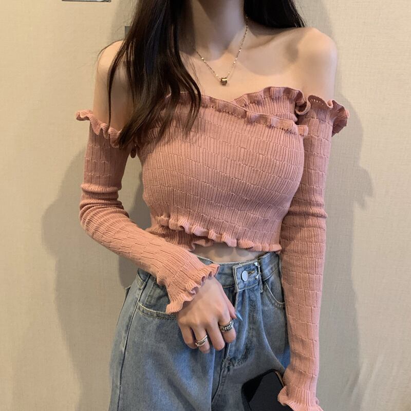 ショートトップス スプリング韓国ファッションスタイルゆったりセーター 春物 オフショルダー SPM35252729076