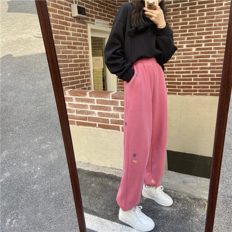 パンツ 秋物ウィンター韓国ファッションルーズウェスト ピンク オータム 冬物 スタイル ウエスト SPM57401247130
