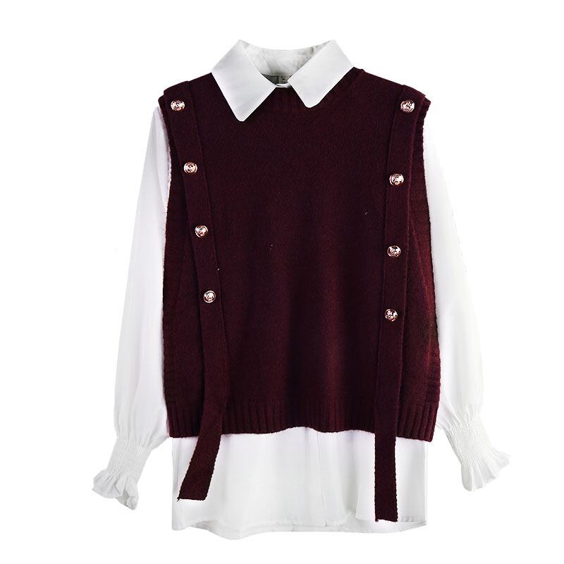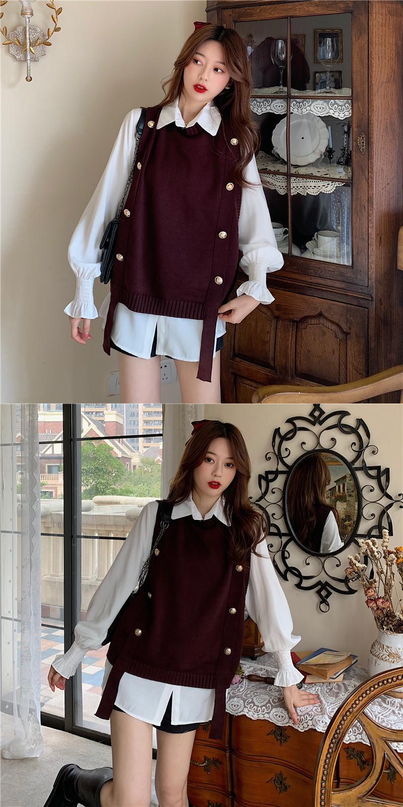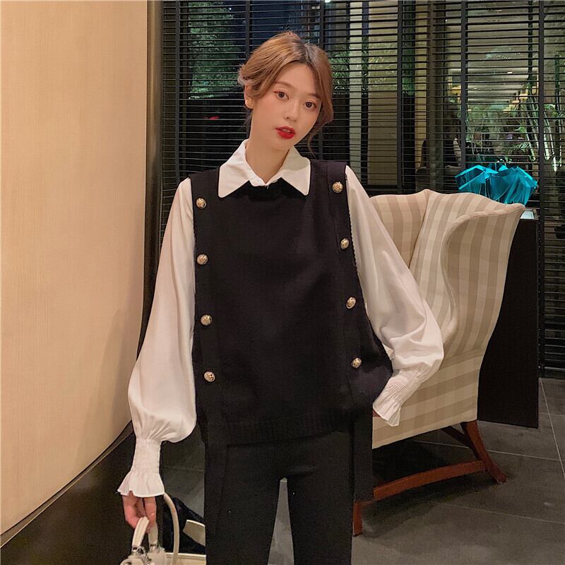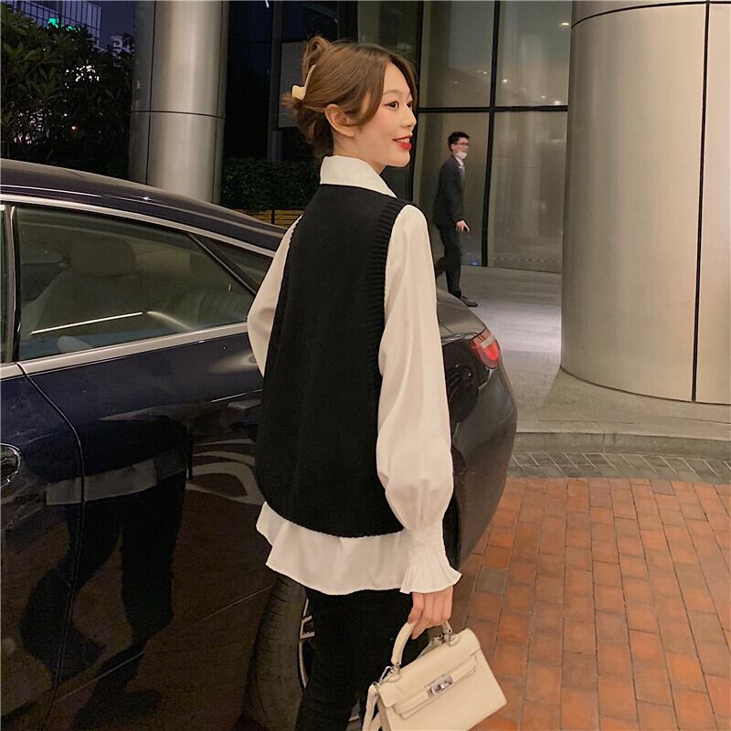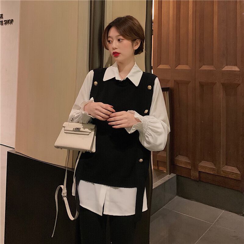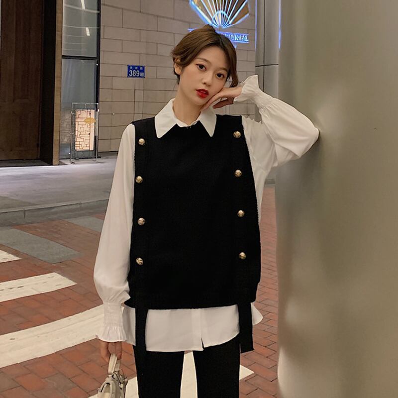 色:白いシャツのワンピース,ブラックベストワンピース,コーヒーカラーベストシングル
