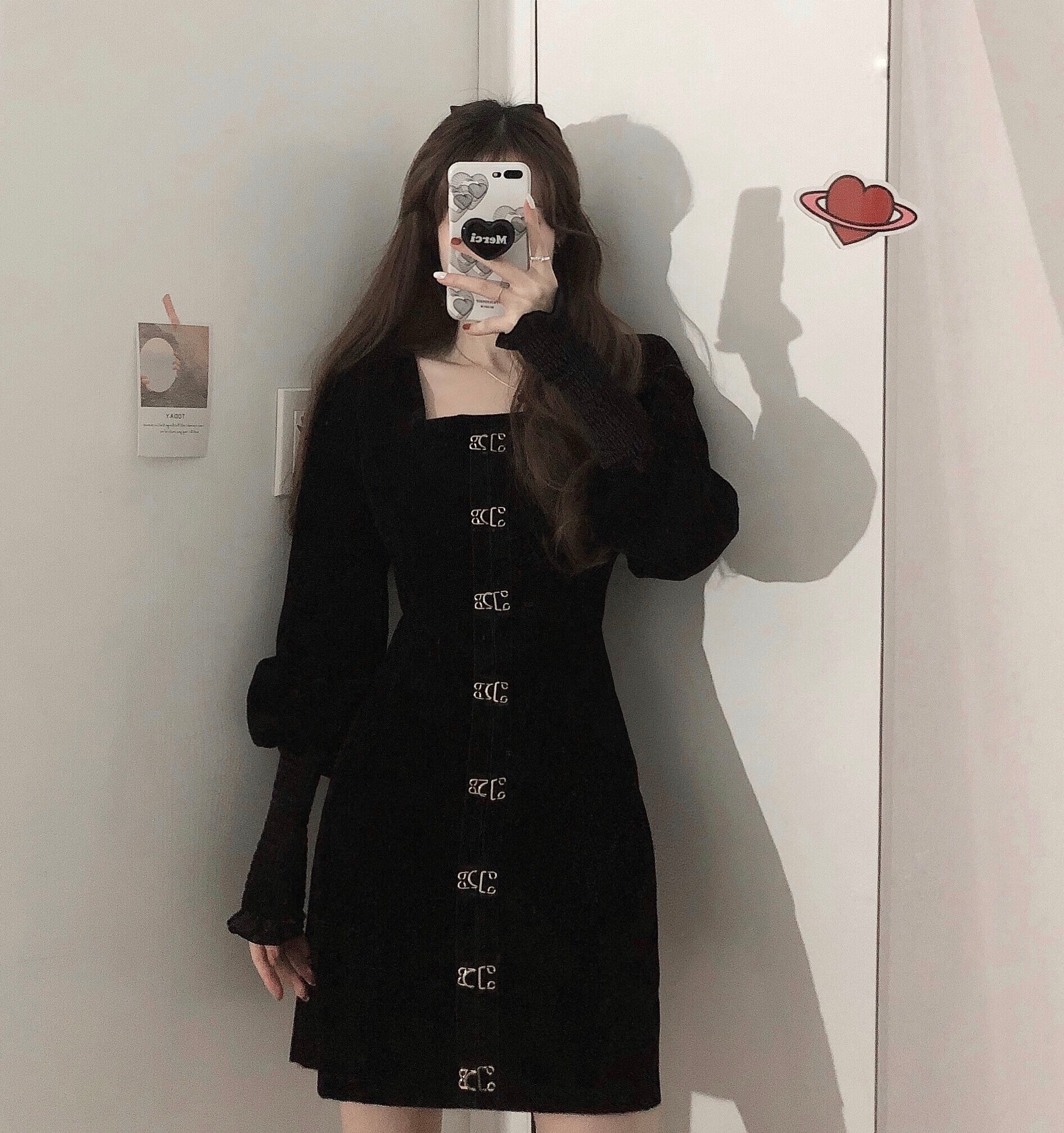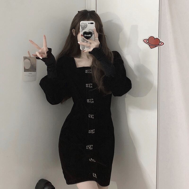 スタイルワンピーススプリング韓国ファッションブラック 春物 スクウェア SPM86334455113