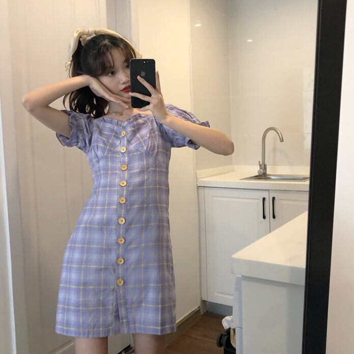 夏服スタンダードスカート ハイウェストウェスト格子柄ワンピース レトロ 夏物 フラワーデザイン ウエスト ミドル丈 MONROE5625389