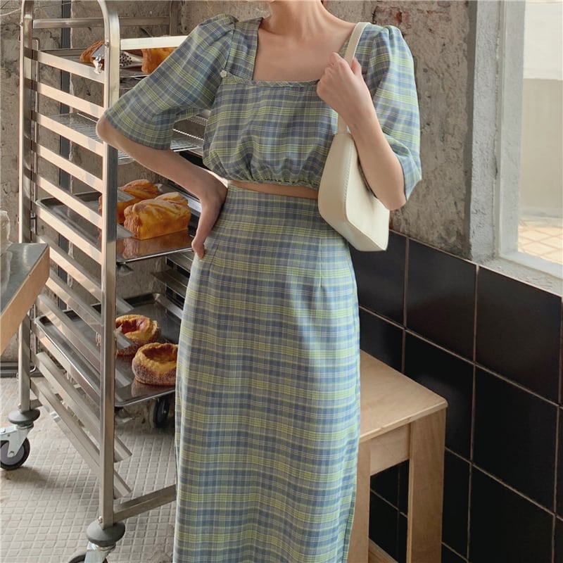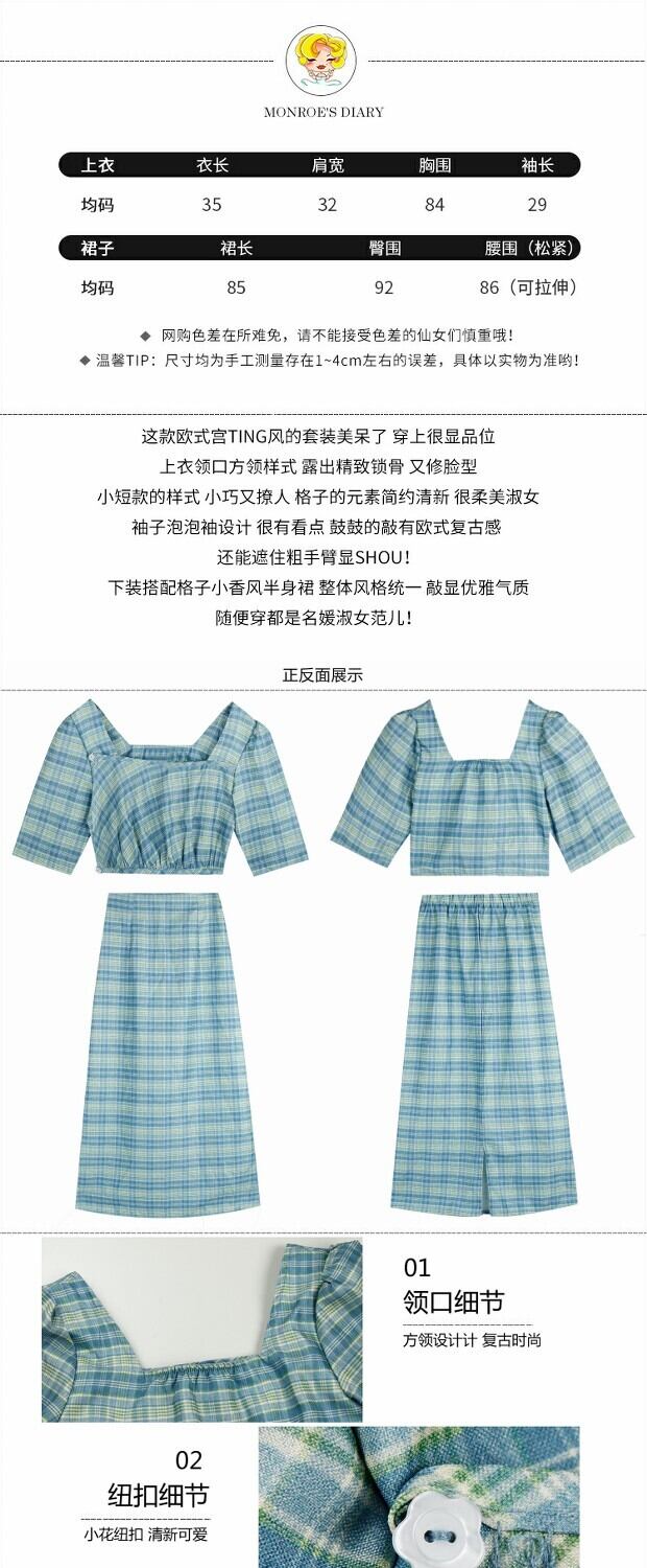 夏服韓国ファッションスタイル格子柄トップス スカート レディース 夏物 MONROE2736693