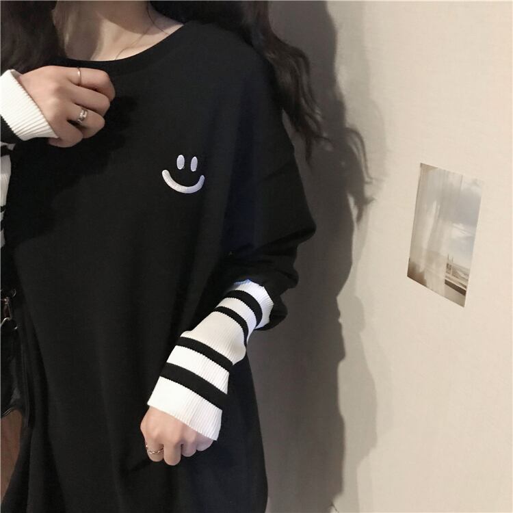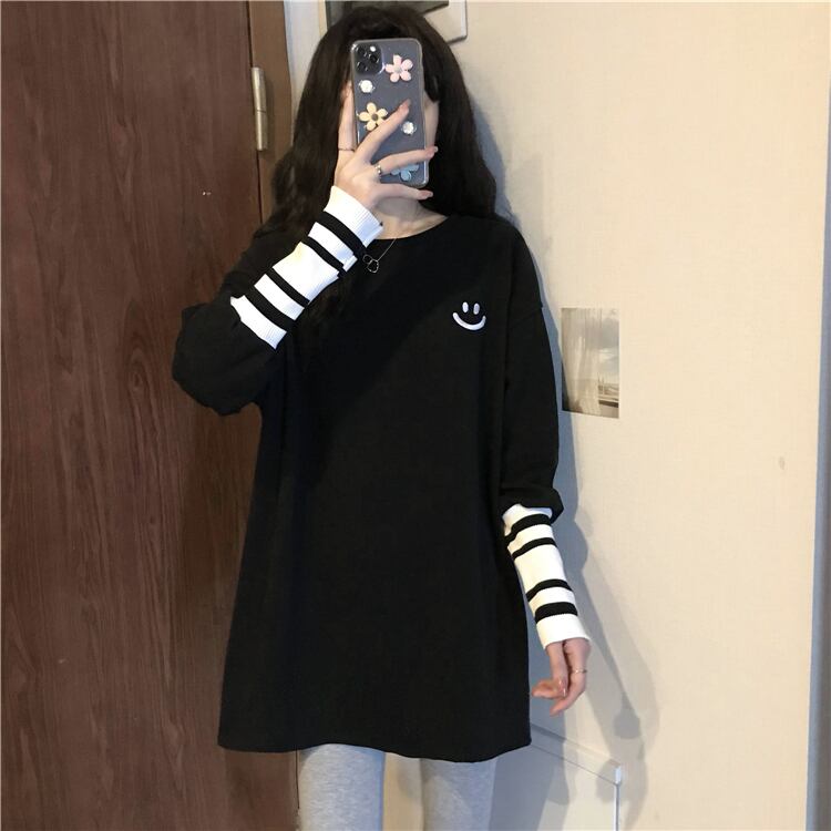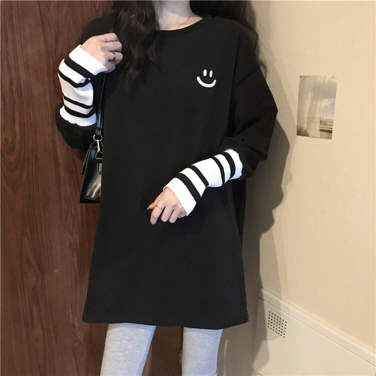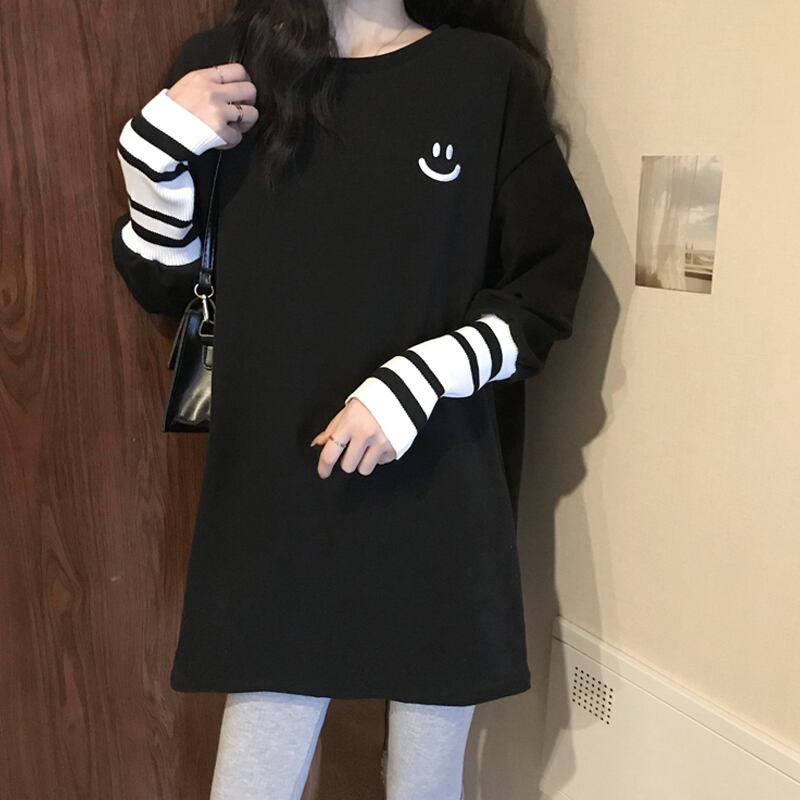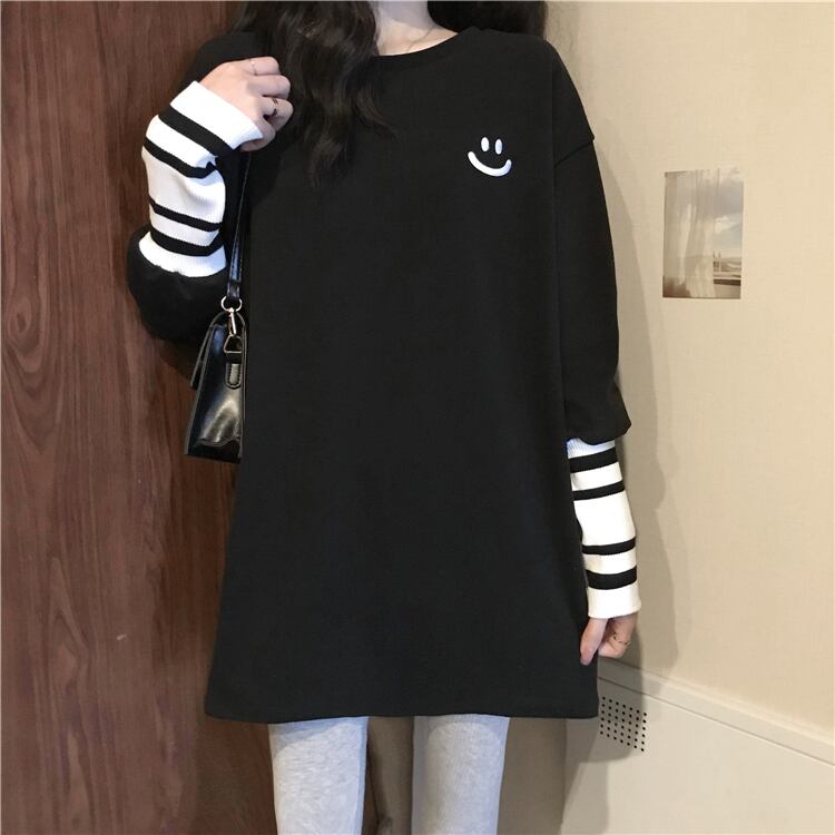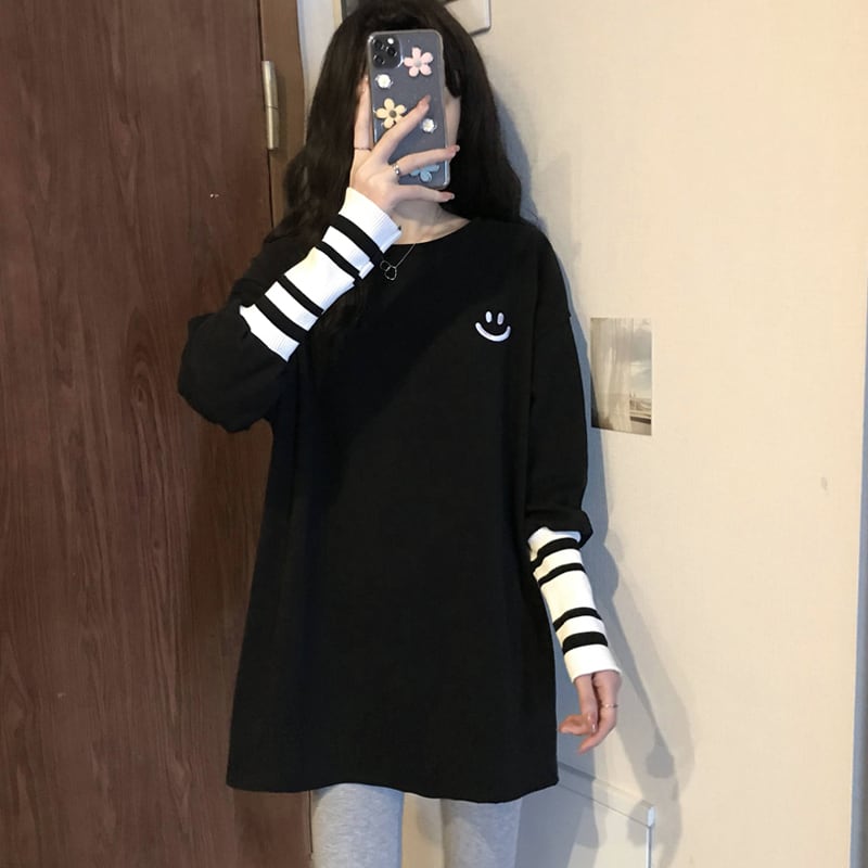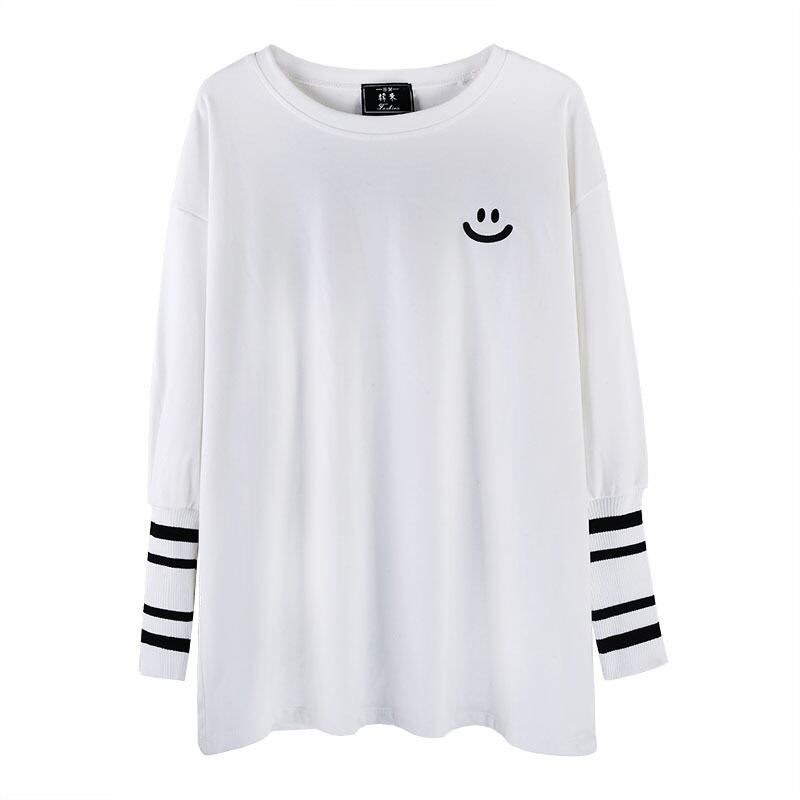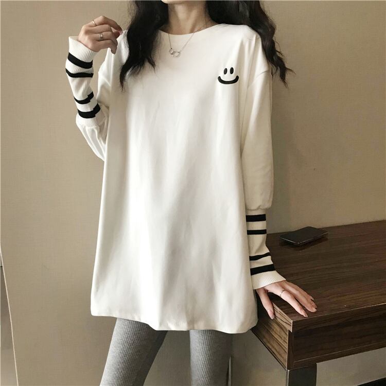 ホワイトゆったりシャツ トップス スプリング韓国ファッションルーズTシャツレディース ロング 春物 スタイル 長袖 ミドル丈 SPM19689314002