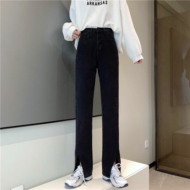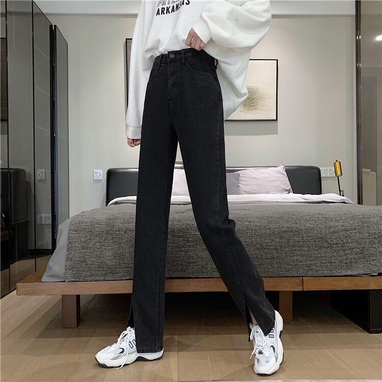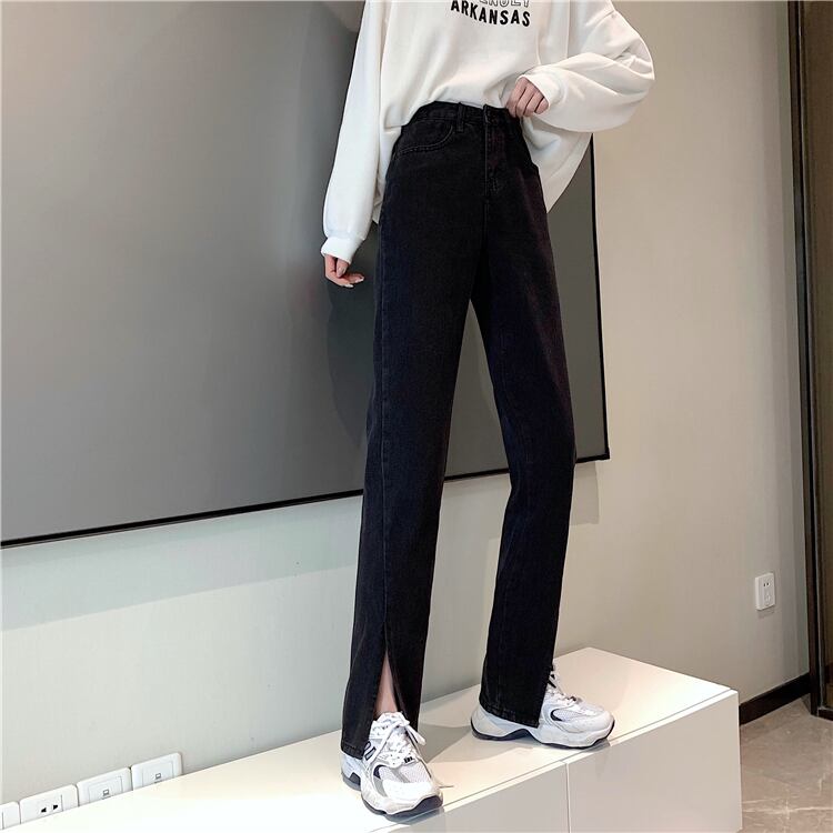 スプリング秋物ブラックパンツ ジーンズ ハイウェスト薄手 ストリート 春物 オータム ウエスト SPM3875084068