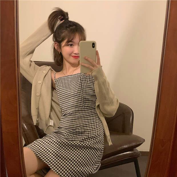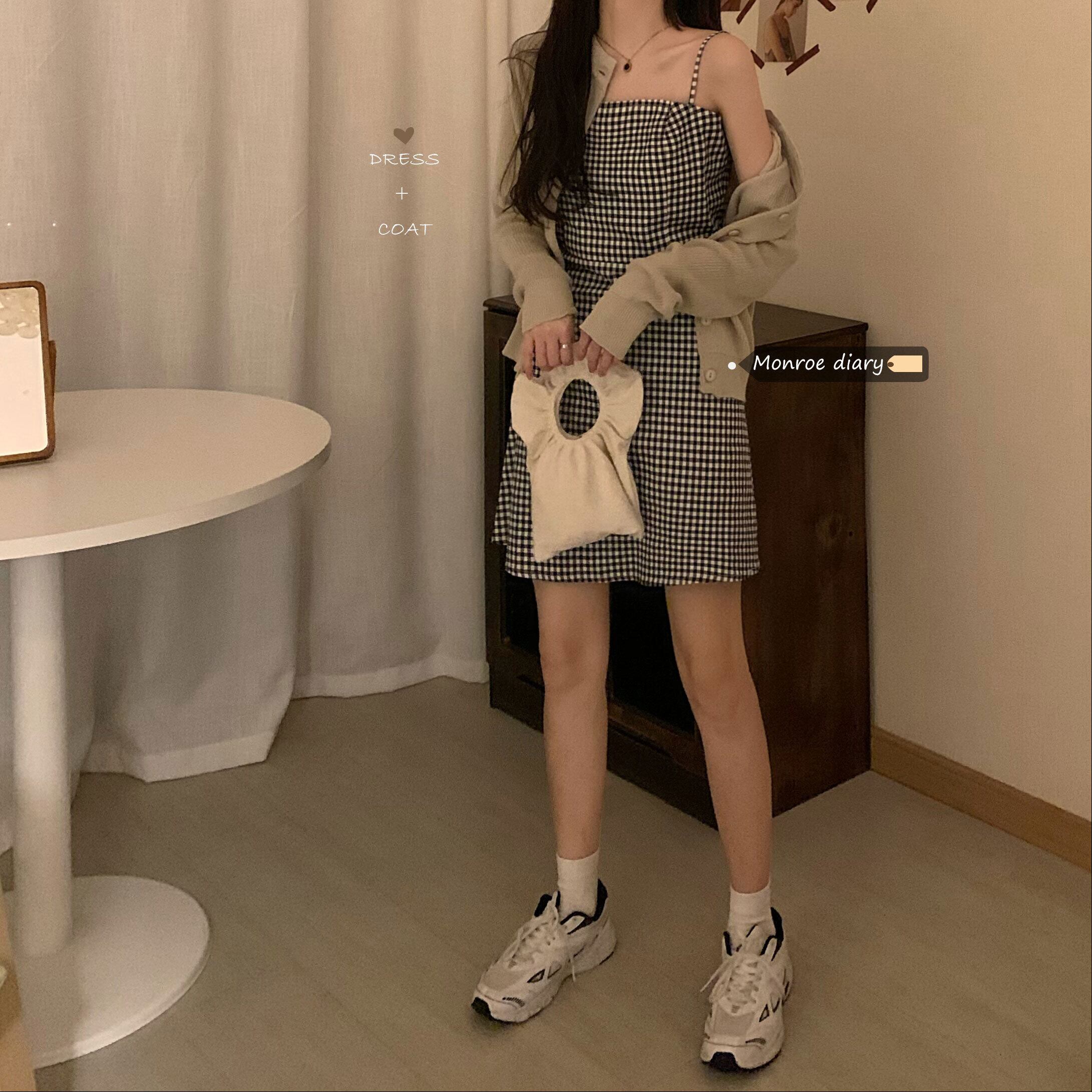 ルーズ格子柄スカート 秋物ワンピースハイウェストウェスト オータム ウエスト ミドル丈 MONROE3723380