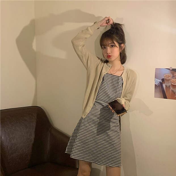 色:チェック柄スカートSサイズ,アプリコットカーディガン,チェック柄スカートM