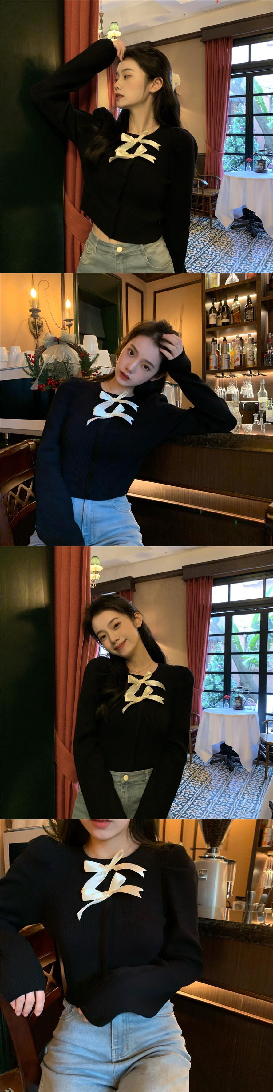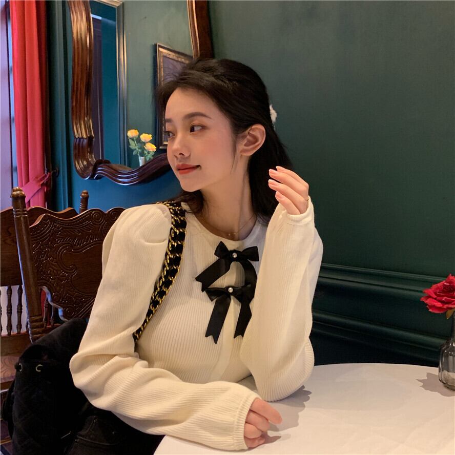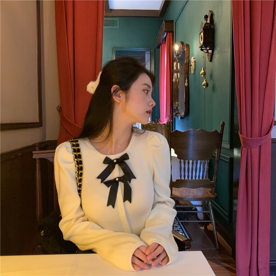 クロップドトップス スプリング秋物スタイル薄手ゆったりリボンセーター ホワイト 春物 オータム SPM29761235560