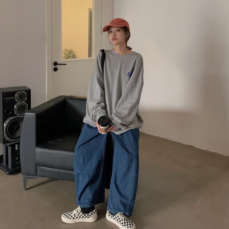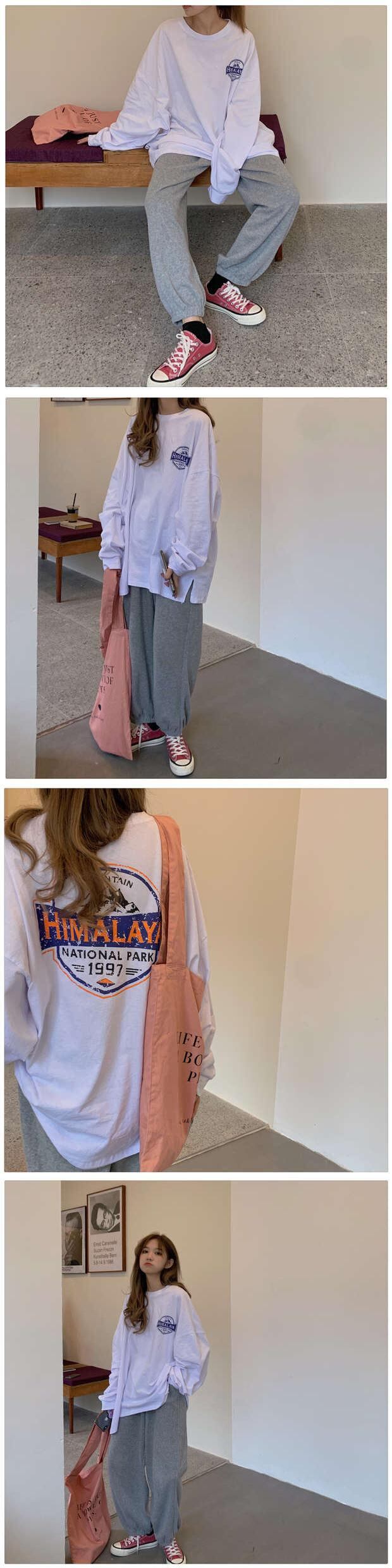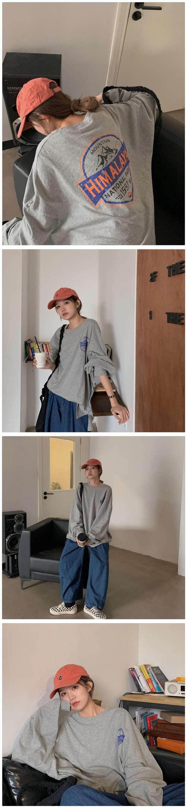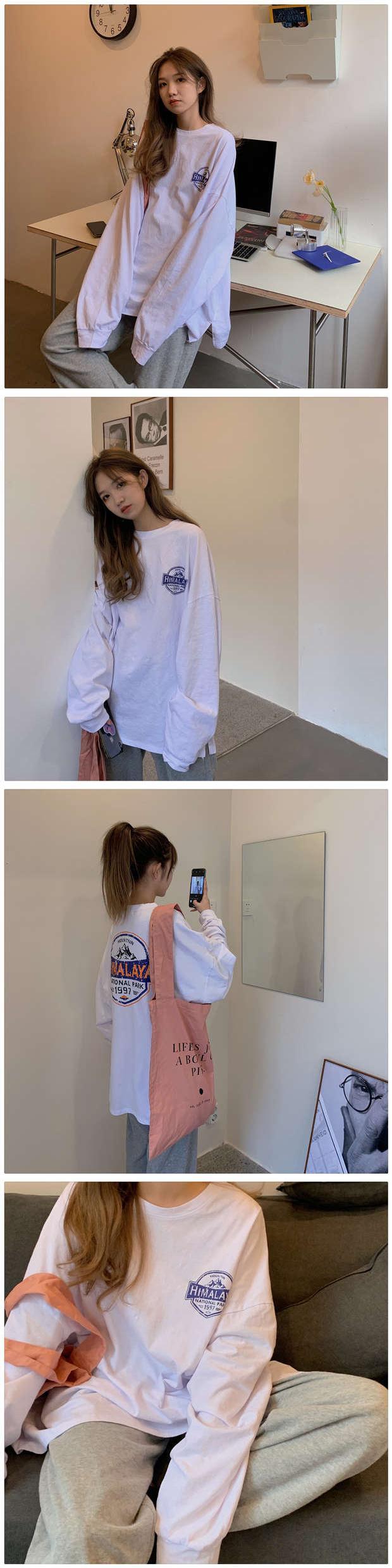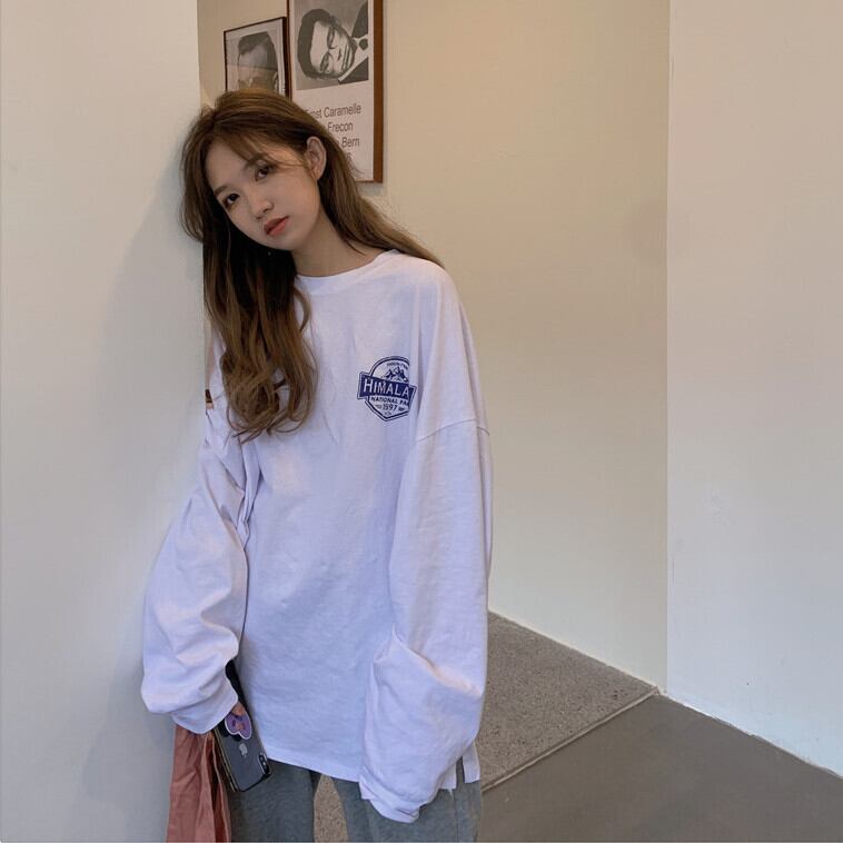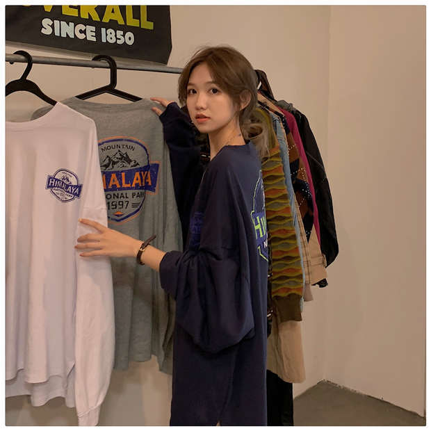 トレンドプリントTシャツ秋物韓国ファッションルーズ薄手トップス ロング オータム スタイル 長袖 ミドル丈 MONROE7158072